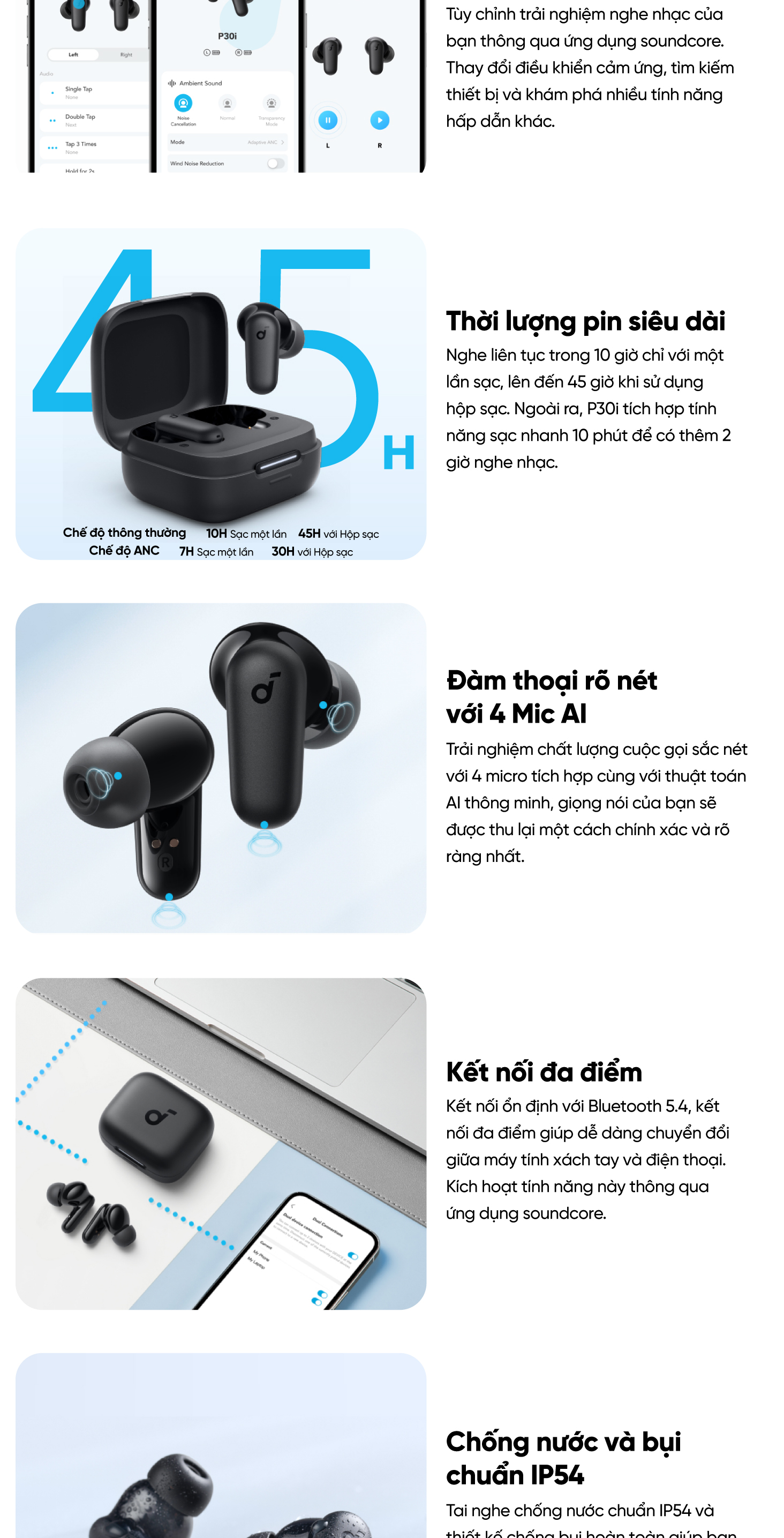 - Pin hộp sạc: tối đa 30 giờ (45 giờ với ANC bật)