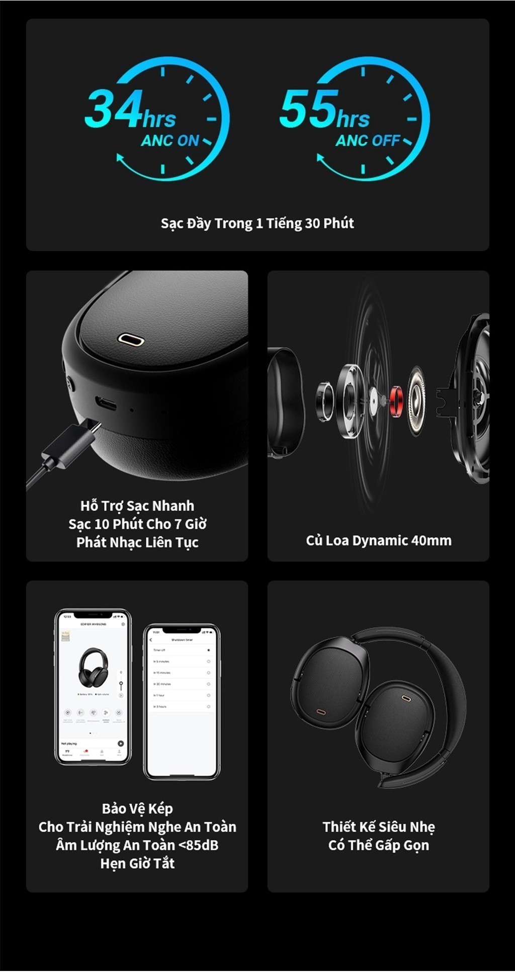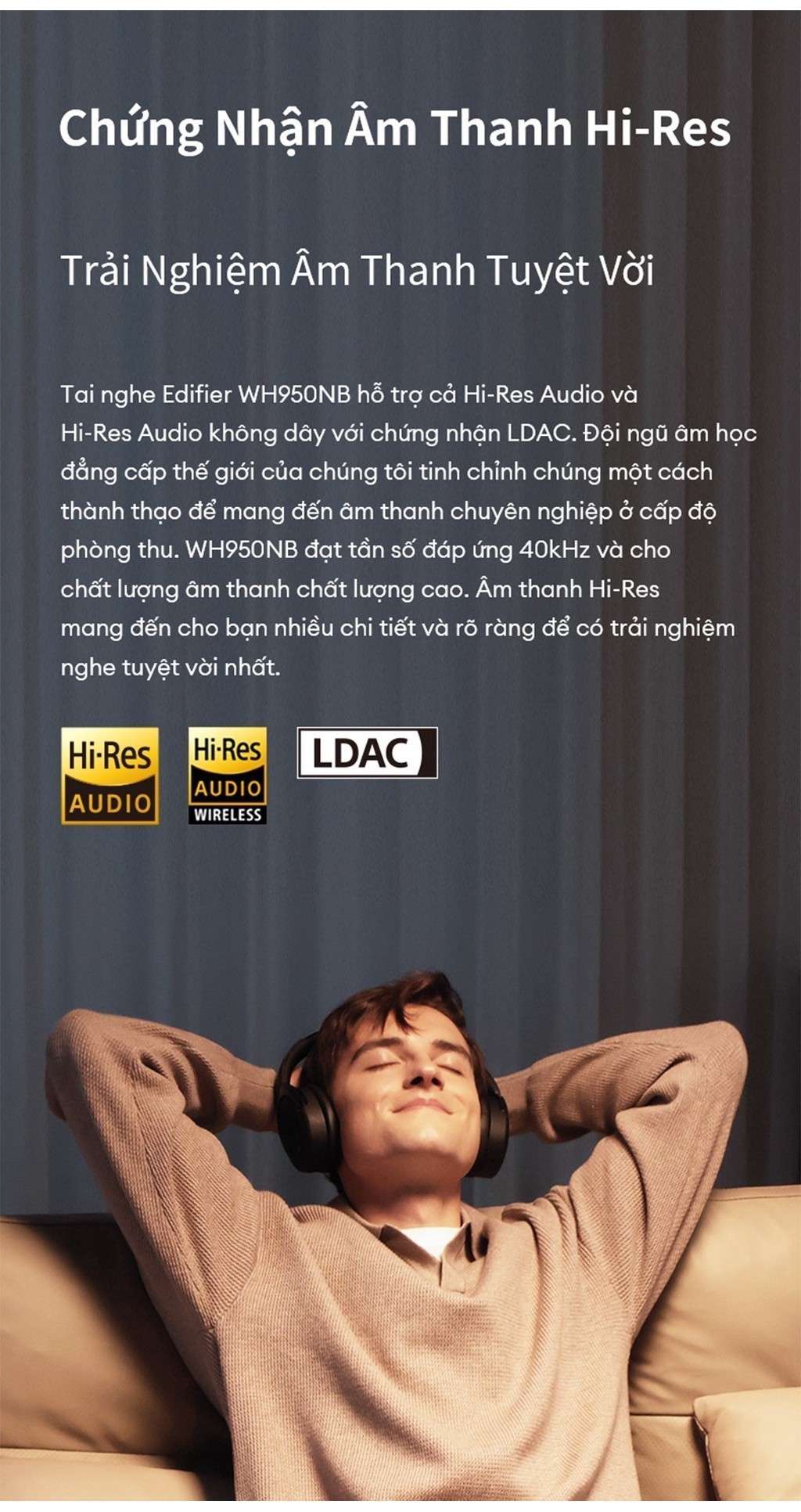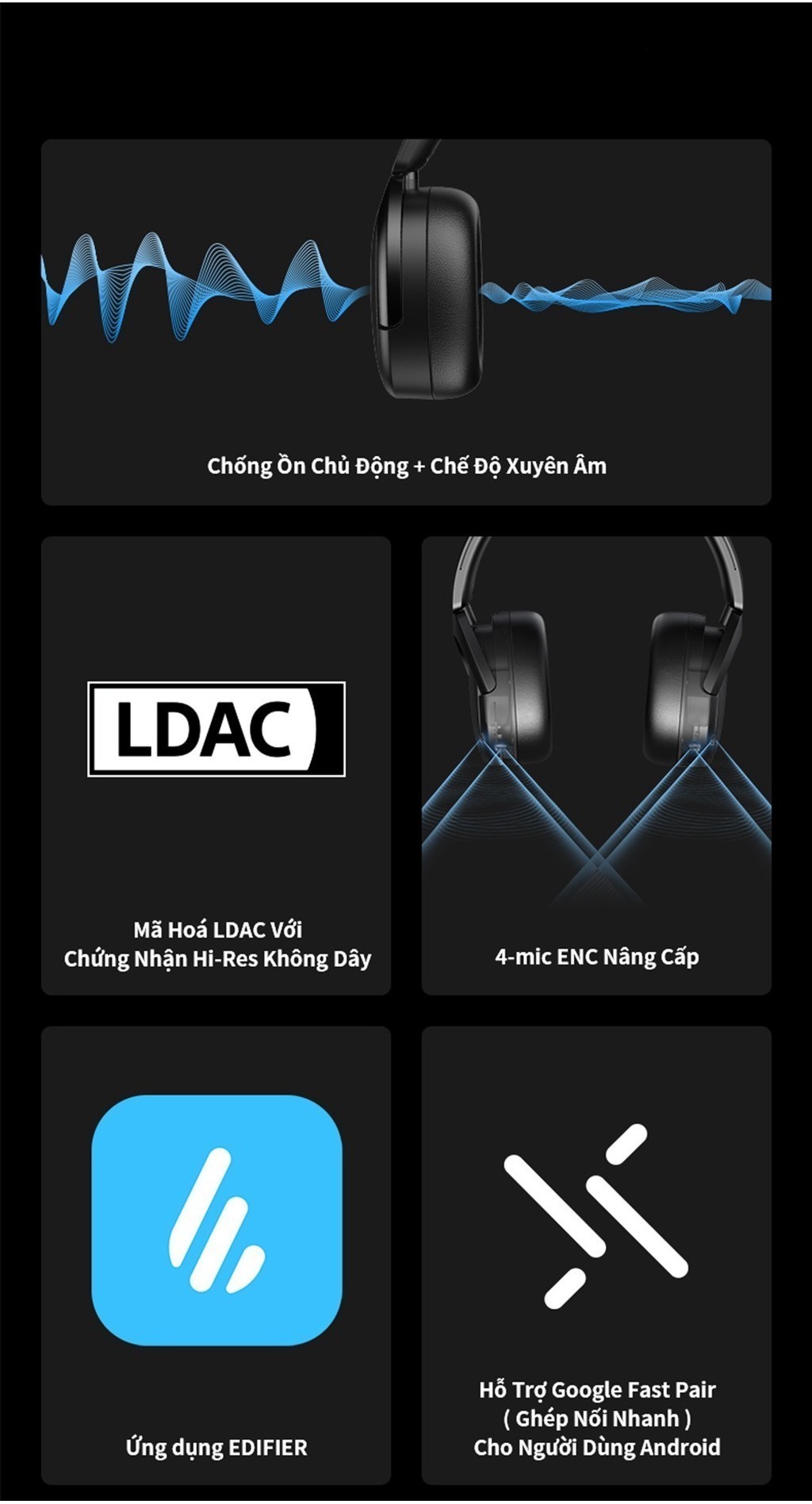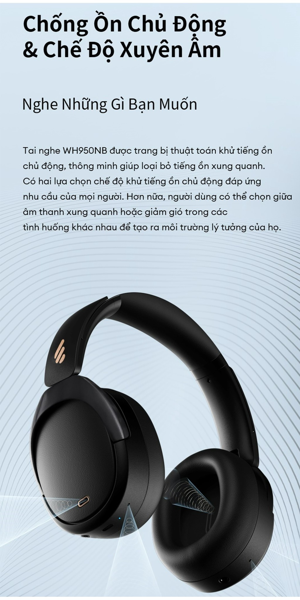 Tai Nghe Bluetooth Chụp Tai EDIFIER WH950NB | Chống Ồn Chủ Động | Thời Gian Sử Dụng Đến 55H | Bảo Hành 15 Tháng
