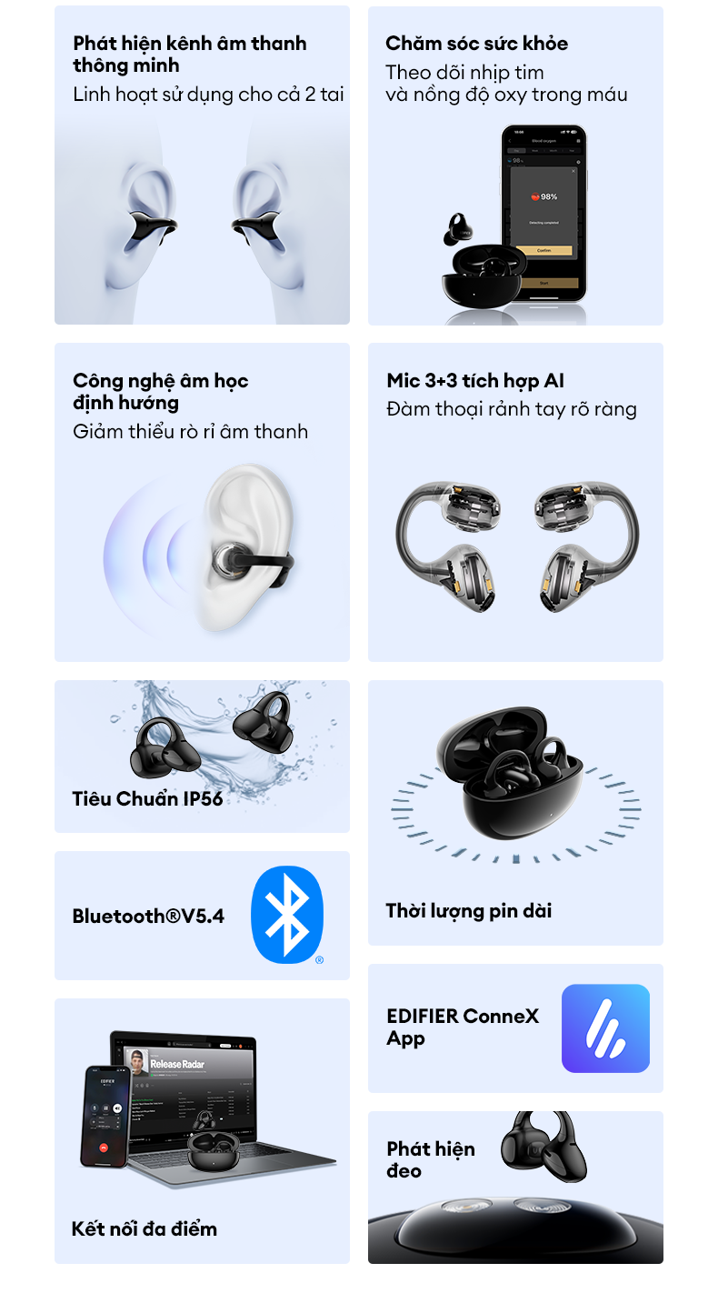 Tai Nghe Bluetooth EDIFIER LolliClip | Thiết Kế Kẹp Vành Tai | Thời Gian Sử Dụng Tới 36H | Bảo Hành 15 ThángTai nghe