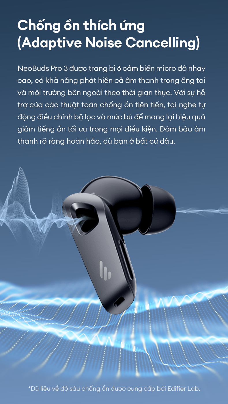 Tai Nghe Bluetooth EDIFIER NEOBUDS PRO 3 | Chống Ồn Chủ Động | Thời Gian Sử Dụng Đến 36H | Bảo Hành 15 Tháng