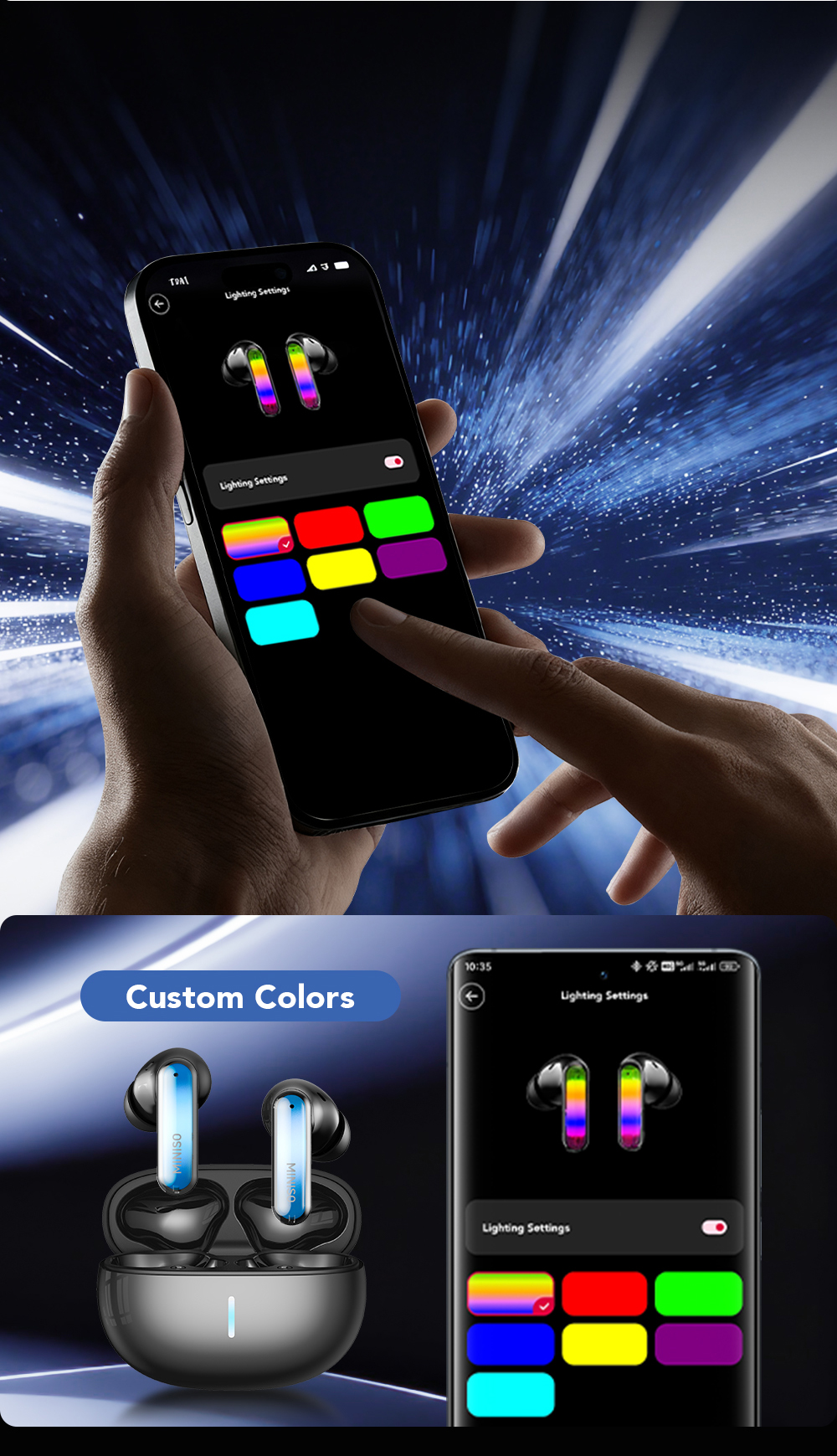 MINISO MS110 HIFI Tai nghe Bluetooth không dây Nhiều chế độ hiệu ứng âm thanh giảm tiếng ồn Tai nghe dịch AI Tai nghe Đèn RGB Tai nghe thể thao Tai nghe