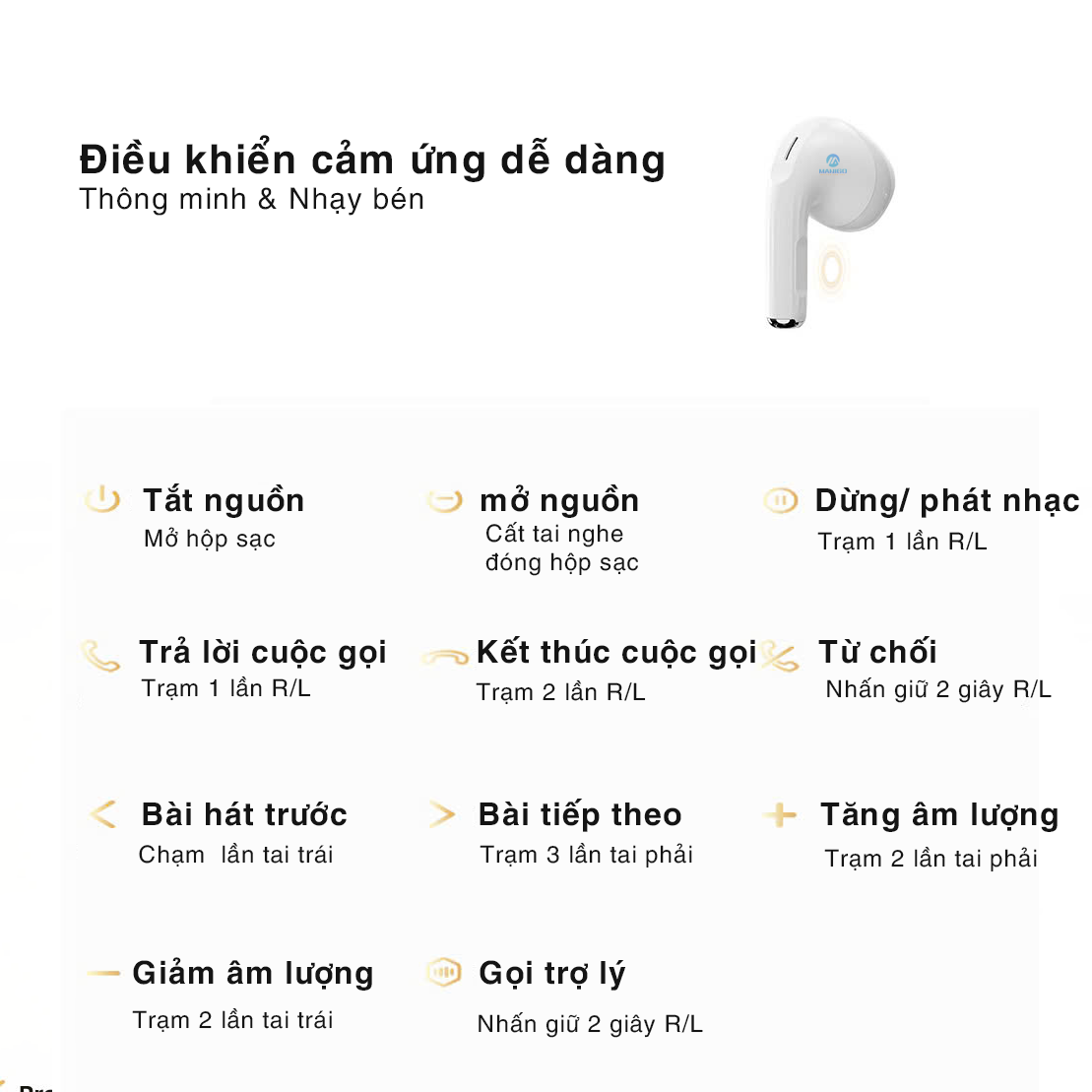 - Tai nghe Bluetooth không dây nhét tai TWS ROCKSPACE EB710 có cảm ứng trên tai nghe, giúp nghe nhạc chuyển bài nghe gọi một cách dễ dàng