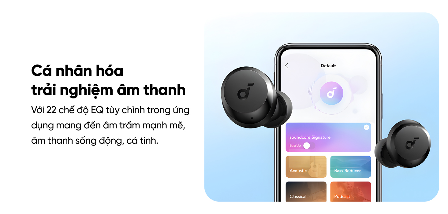 ✏️ Âm thanh sống động: Công nghệ BassUp độc quyền và 20 chế độ EQ tùy chỉnh trong ứng dụng mang đến âm trầm mạnh mẽ, âm thanh sống động, cá tính.