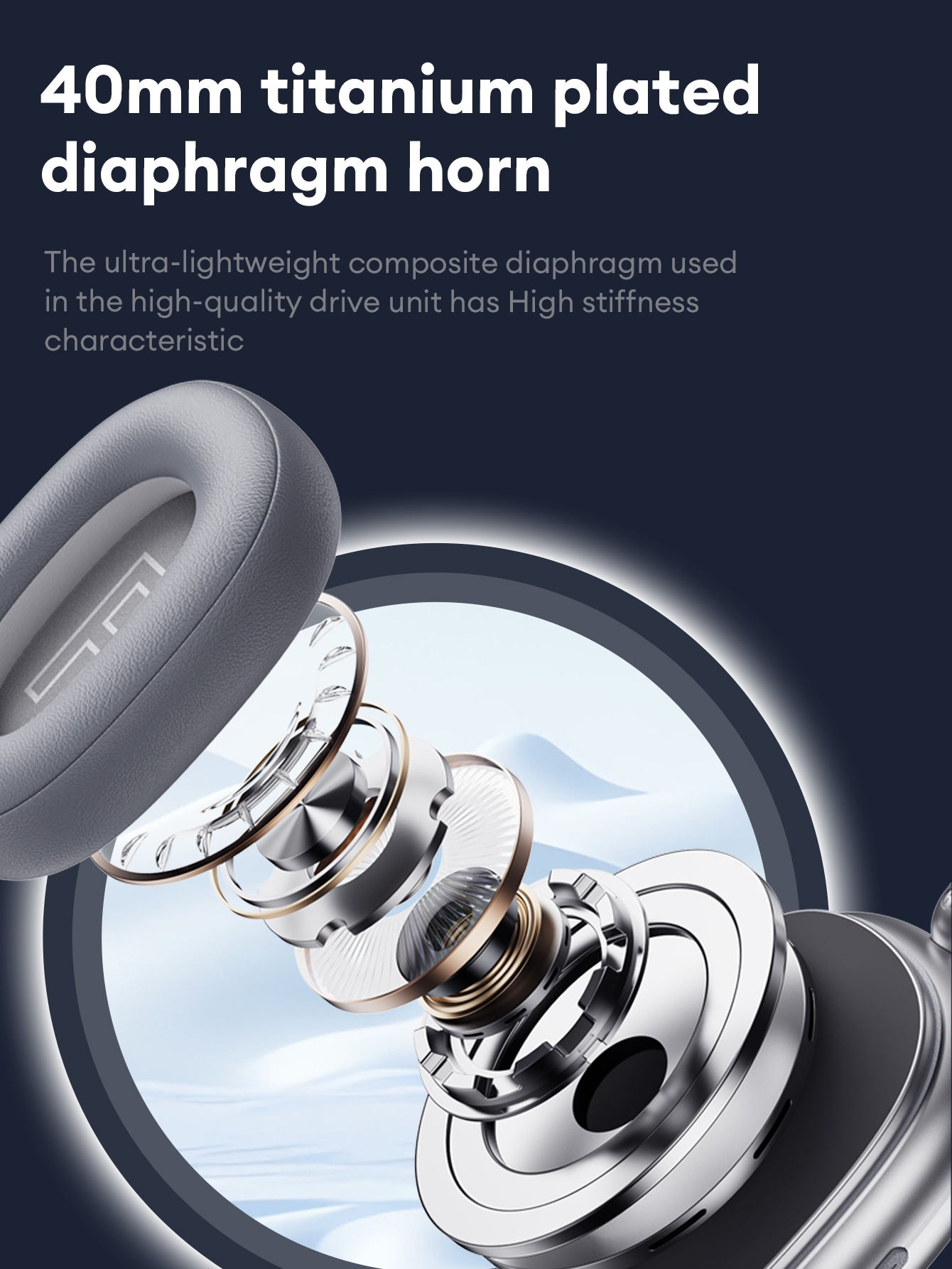 Trình điều khiển động màng loa composite 40mm mang đến âm thanh phong phú, chi tiết với độ rõ nét cao. Trải nghiệm âm thanh nổi đắm chìm và âm trầm sâu để có trải nghiệm nghe cao cấp.