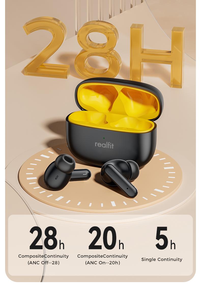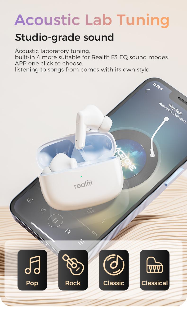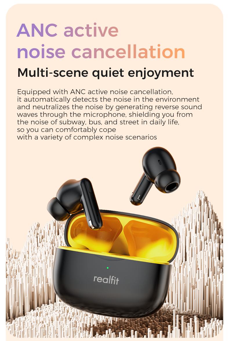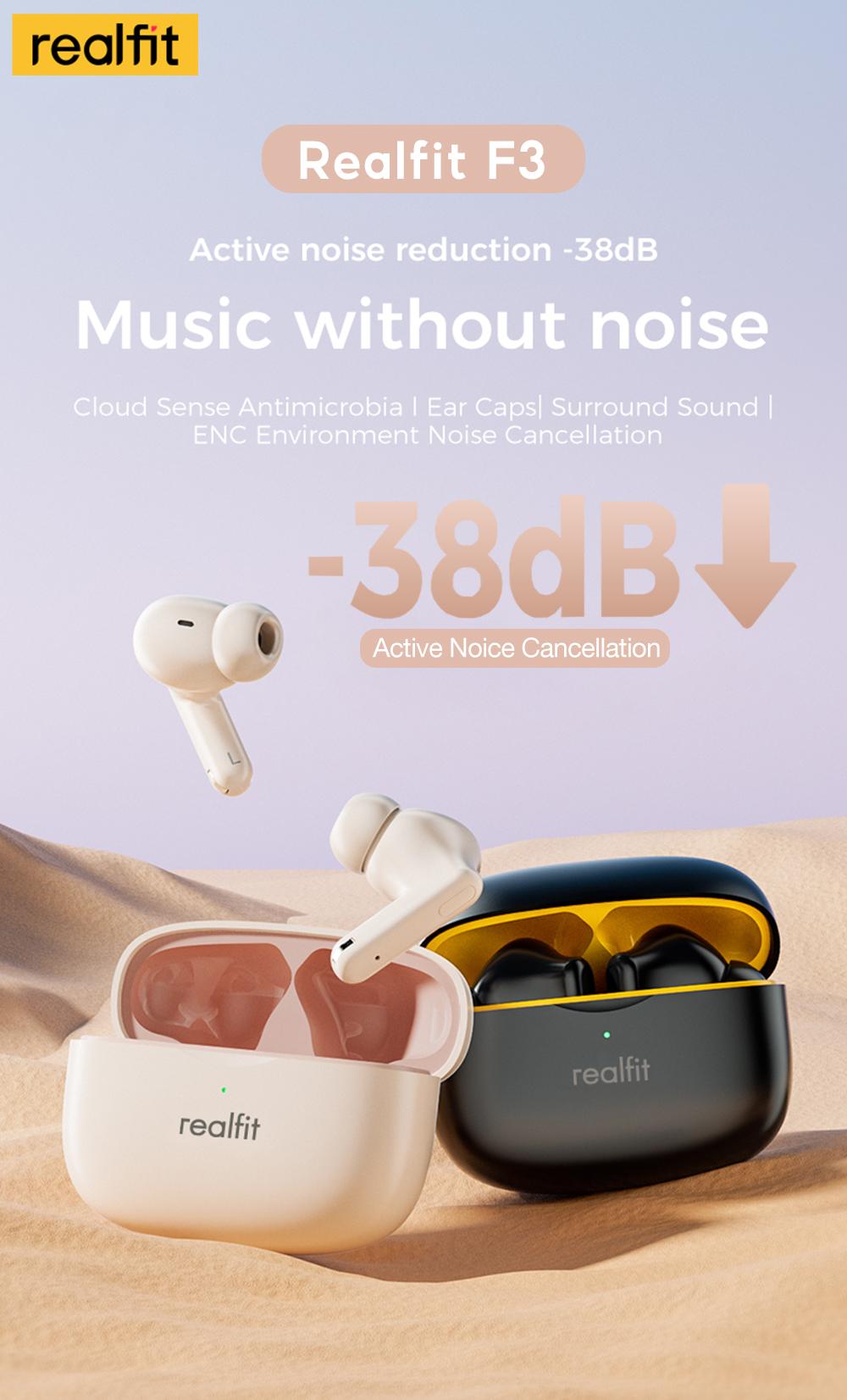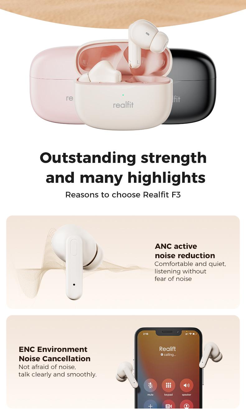 Tai nghe Bluetooth, Realfit F3 ANC, với Khử tiếng ồn -38dB, Chế độ trò chơi, Độ trễ thấp