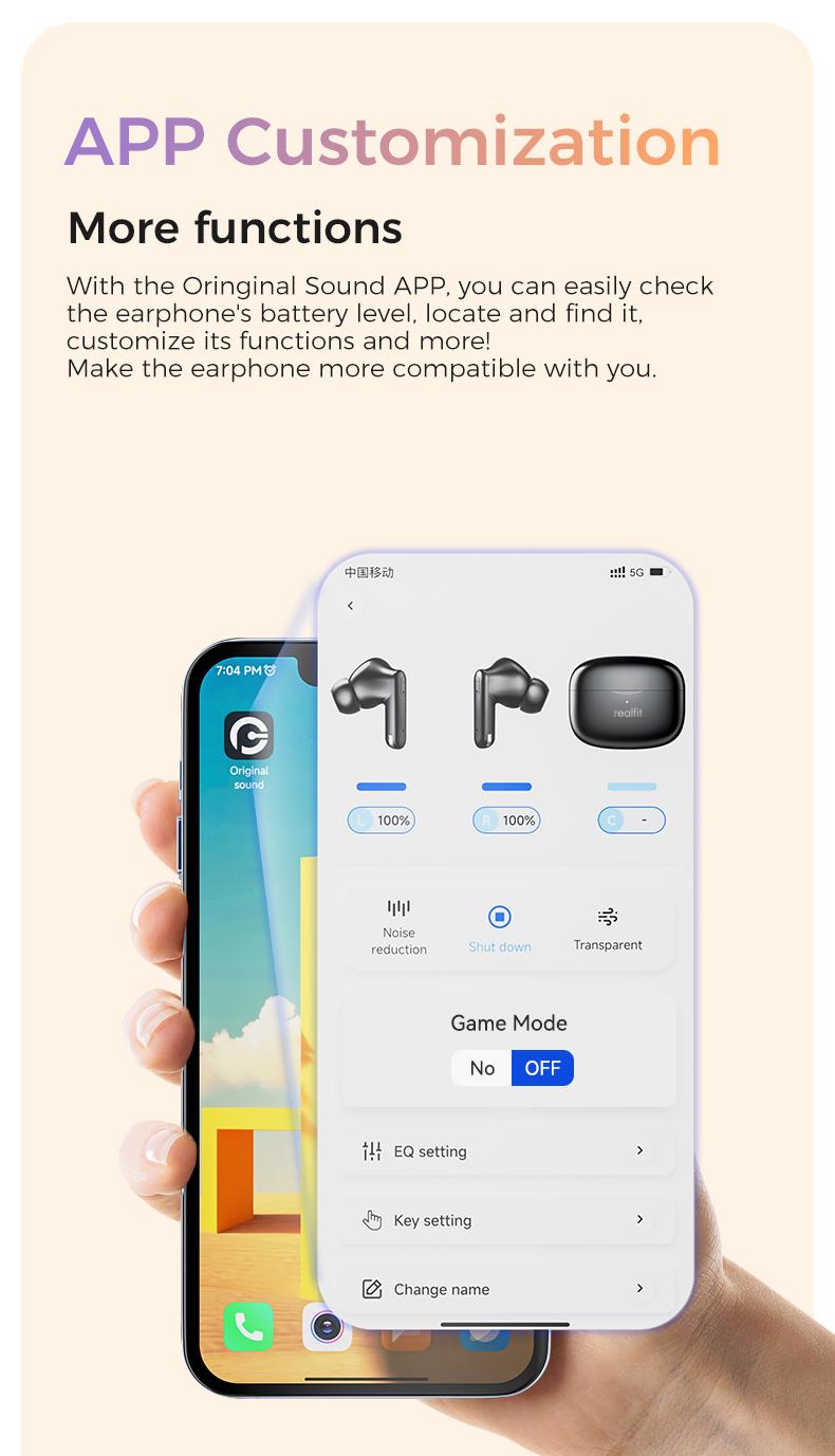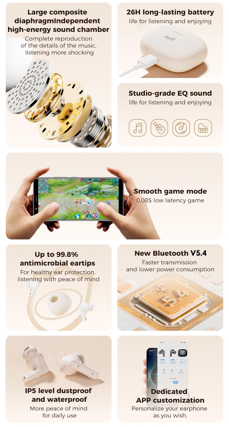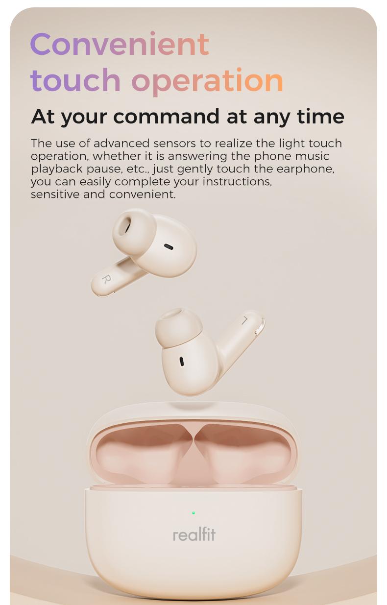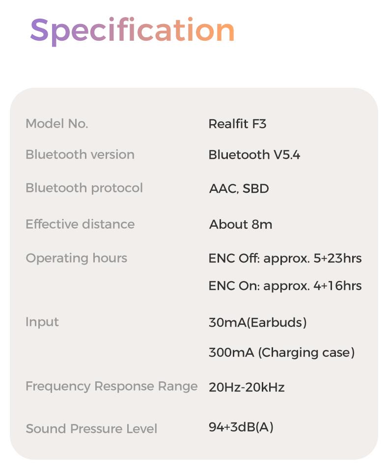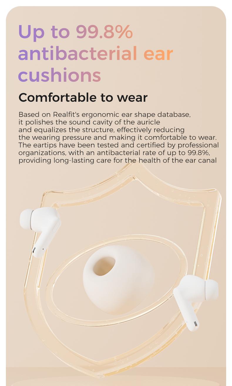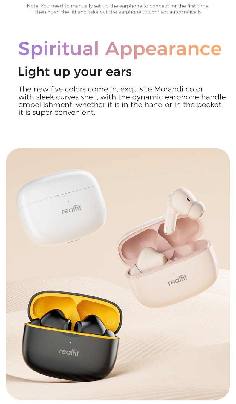 Tai nghe Bluetooth, Realfit F3 ANC, với Khử tiếng ồn -38dB, Chế độ trò chơi, Độ trễ thấp