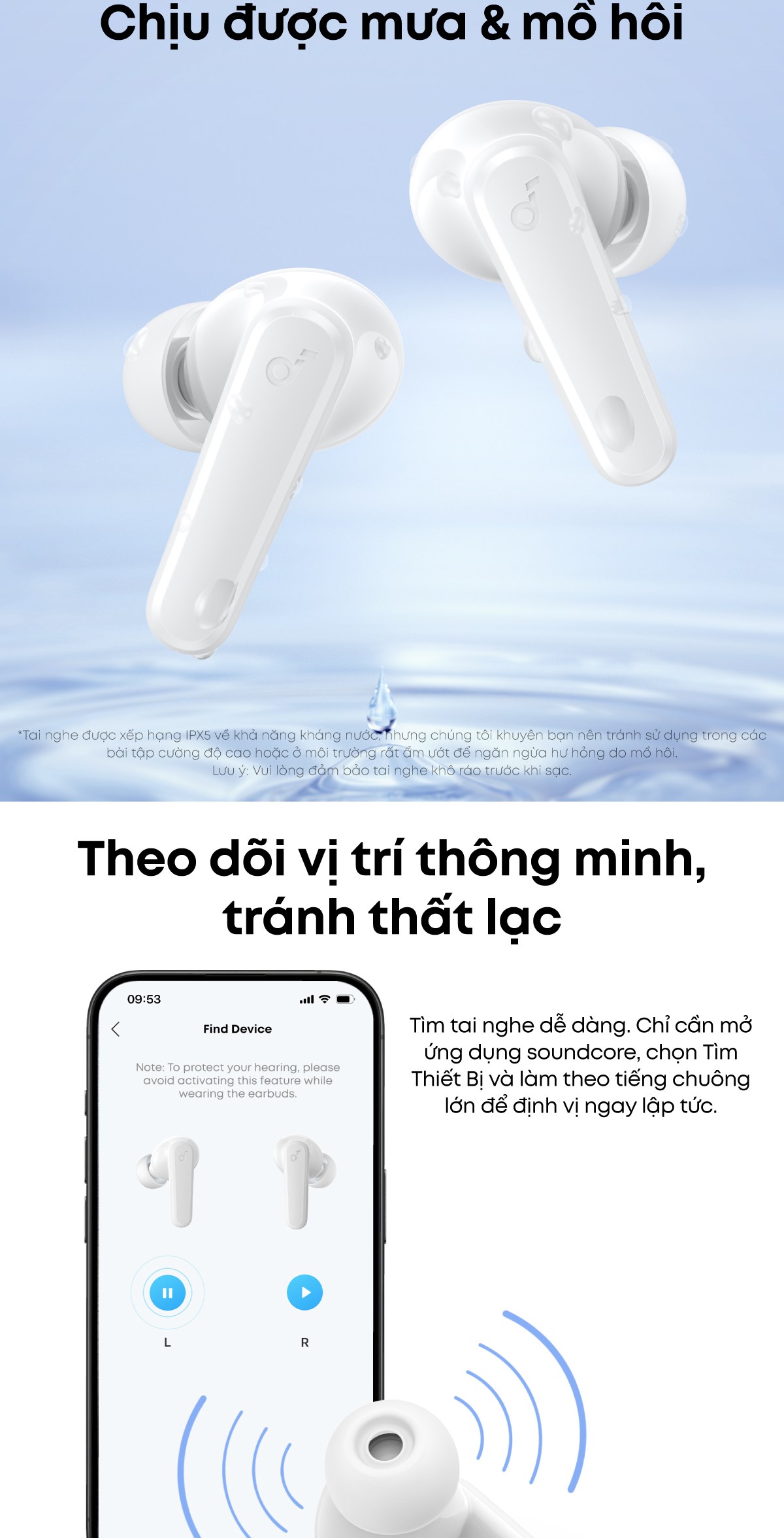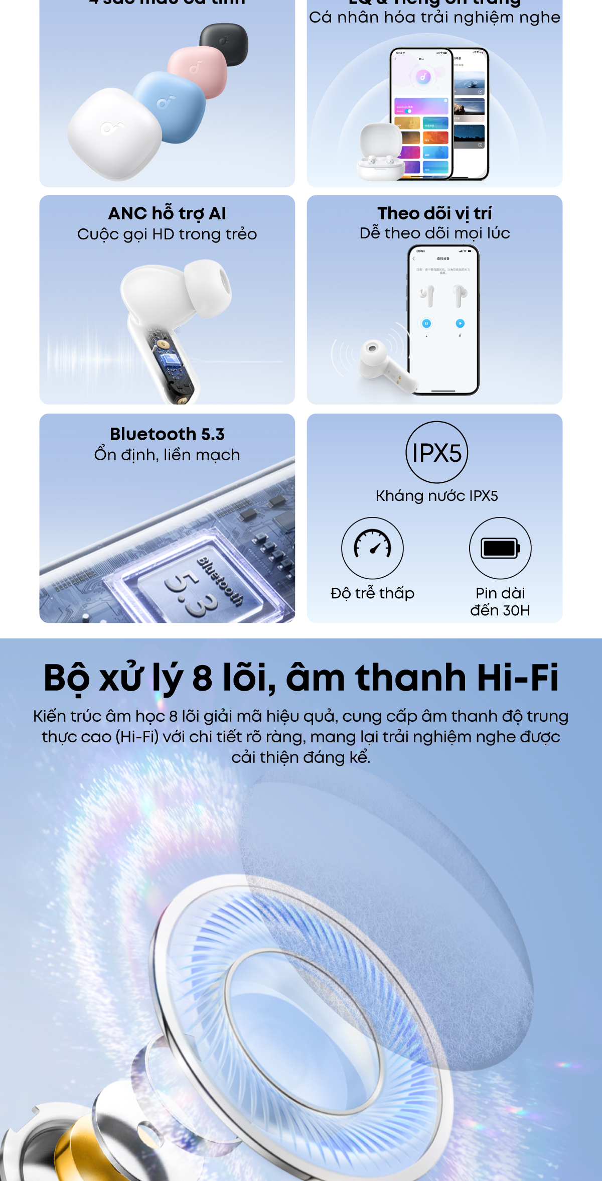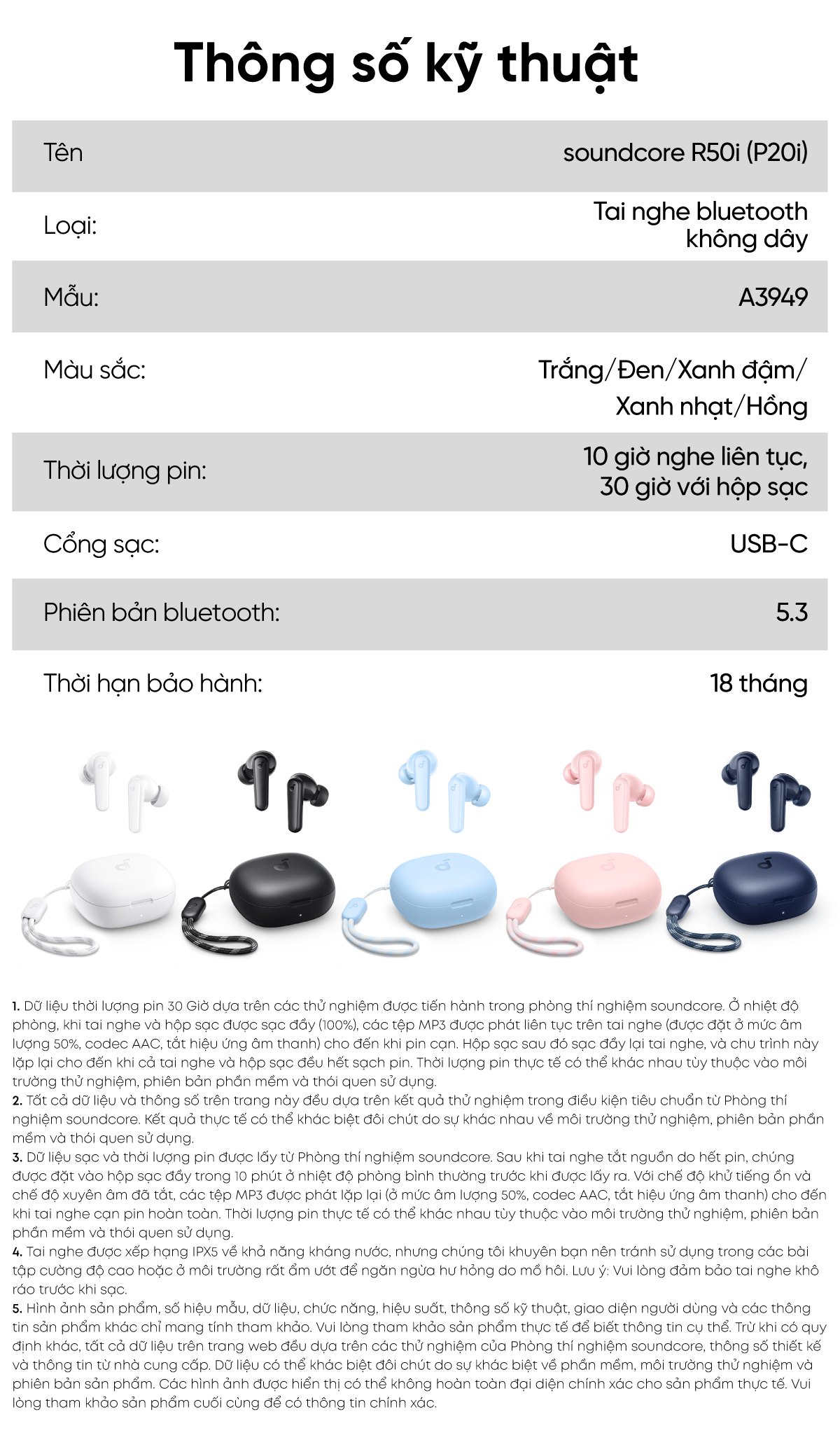 Tai nghe bluetooth soundcore R50i (P20i) siêu nhỏ gọn | 30 giờ phát nhạc | Chống nước IPX5 | Tích hợp phiên dịch