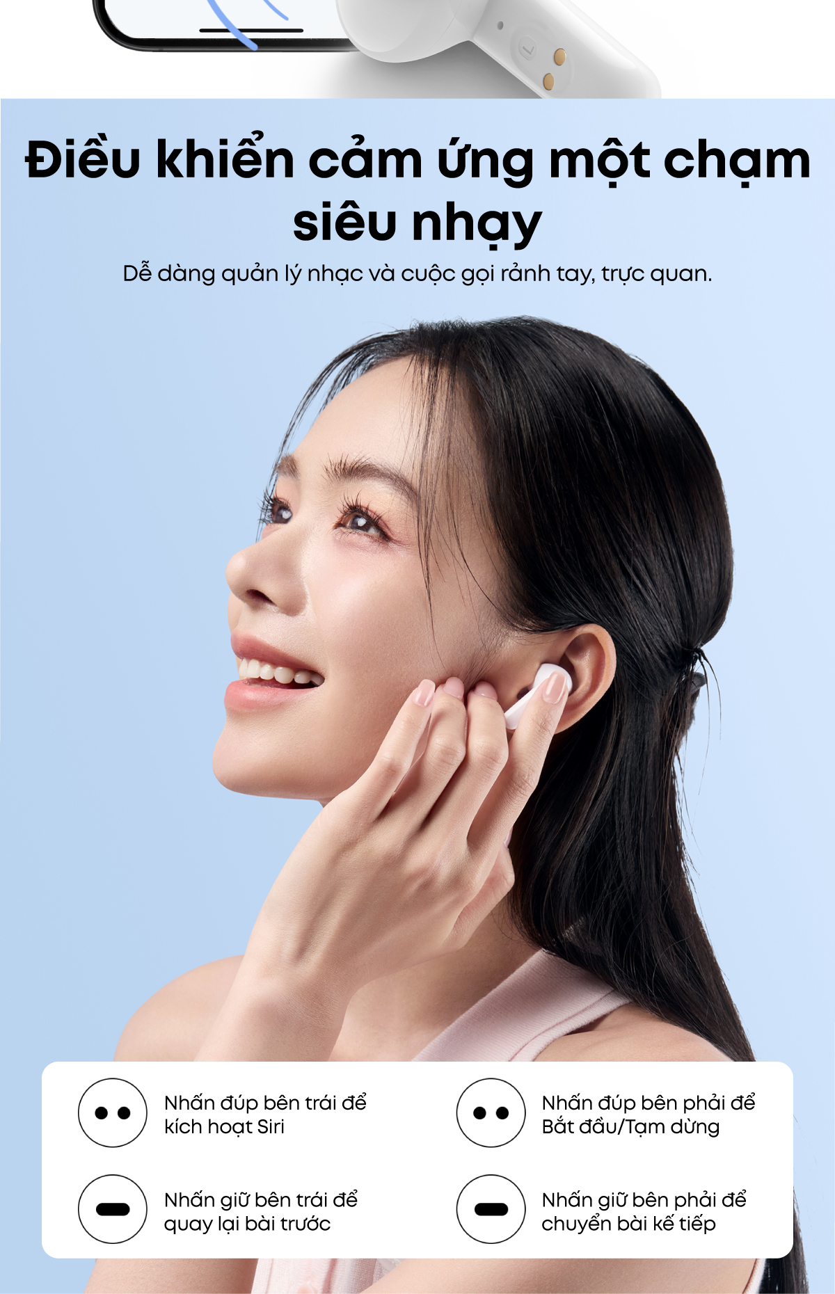 - Dung lượng pin: 60mAh *2 (tai nghe), 430mAh (hộp sạc)