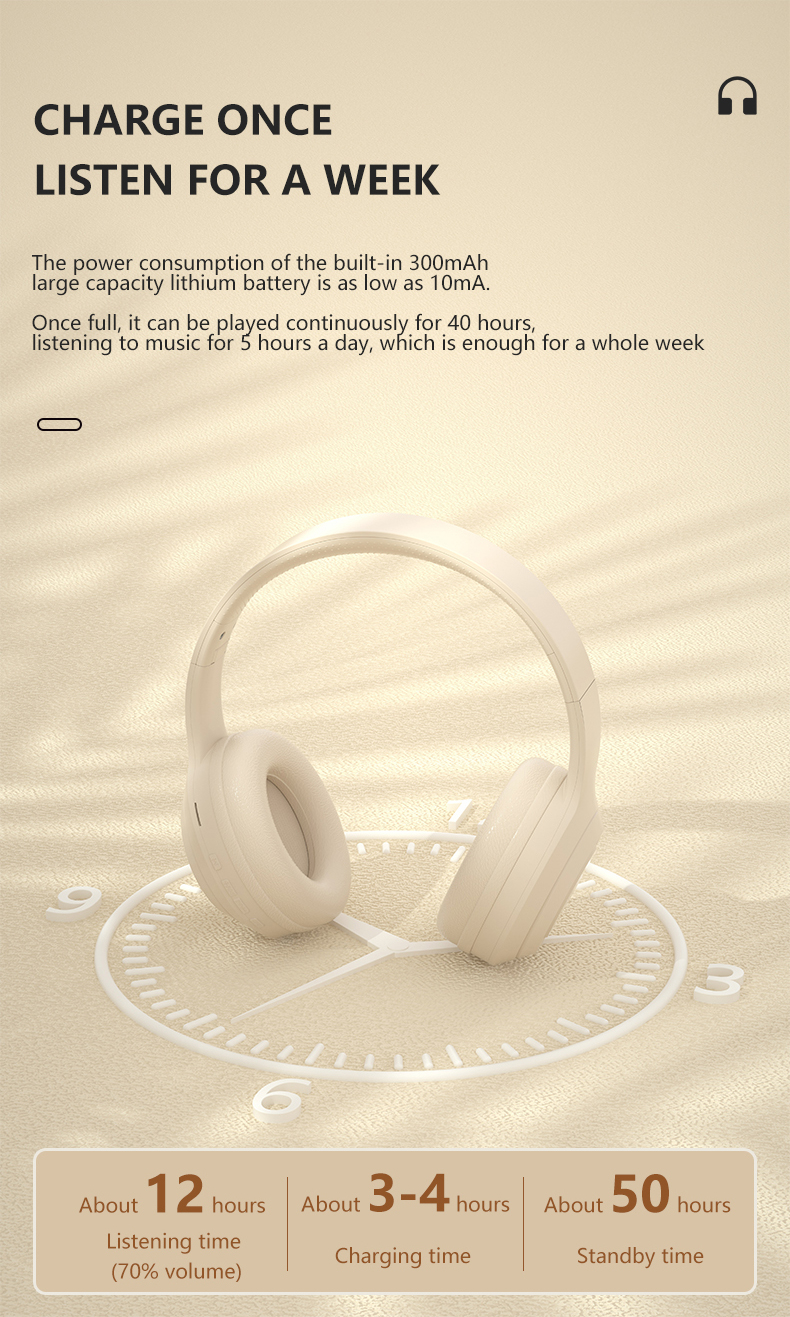 3. Thời lượng pin dài: Pin dung lượng cao tích hợp kéo dài 10-12 giờ, cho phép bạn thưởng thức âm nhạc trong thời gian dài mà không cần sạc thường xuyên.