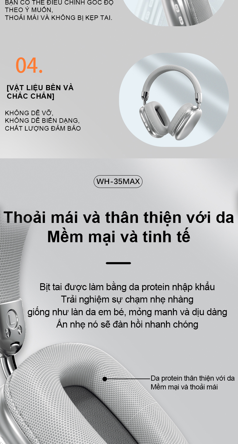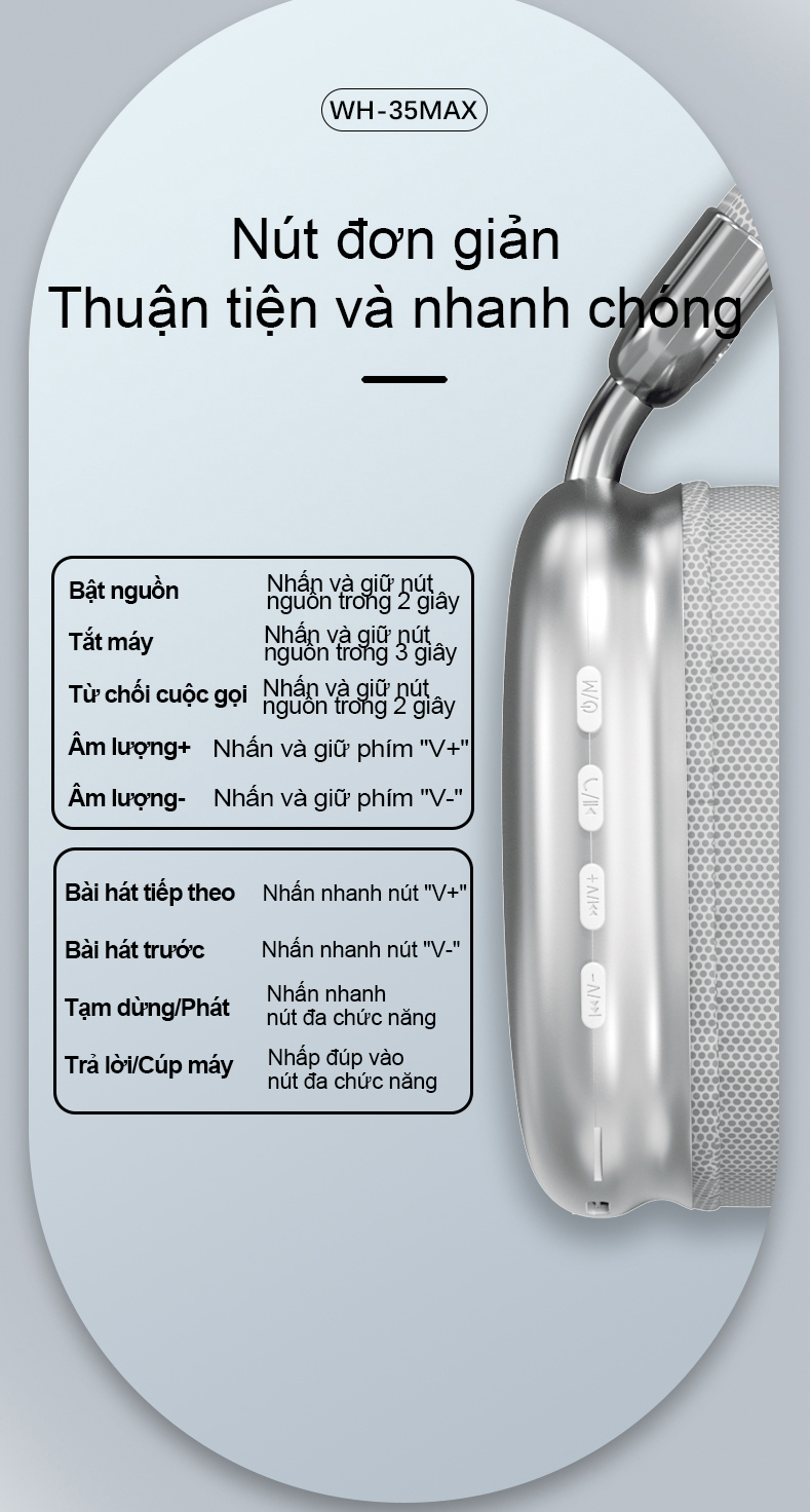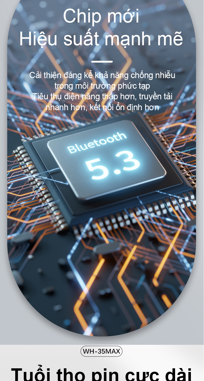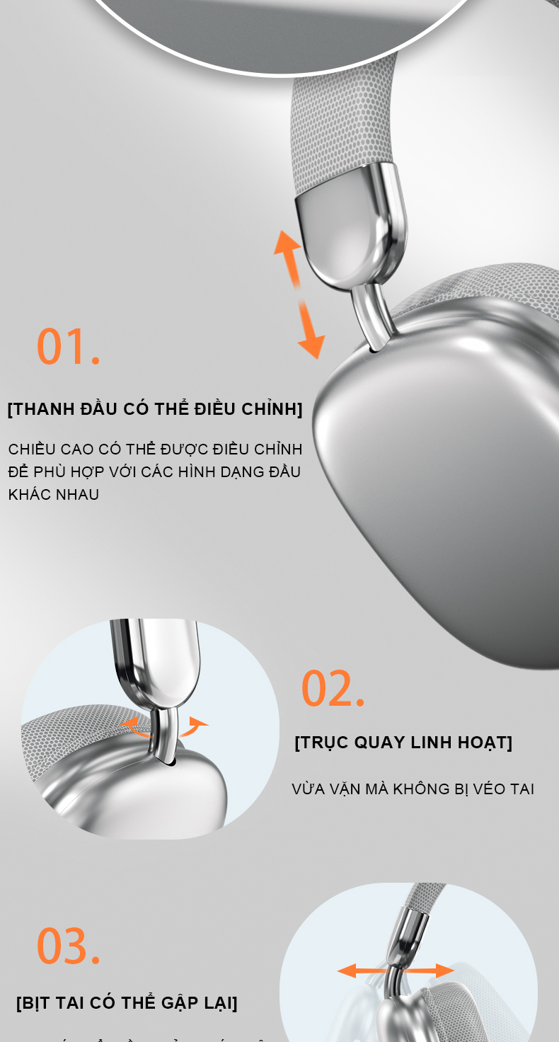 2. Chip Bluetooth 5.3 phiên bản nâng cấp, kết nối và tín hiệu ổn định hơn, sẽ không ngắt kết nối; thiết kế có thể gập lại & có thể thu vào, dễ dàng mang theo; các phím điều chỉnh âm lượng ở bên cạnh tai nghe.