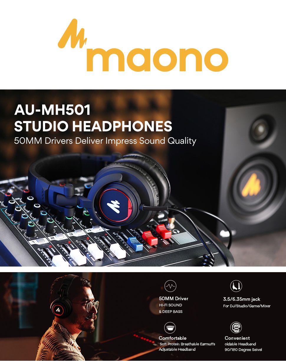 Tai nghe chụp tai MAONO AU-MH501 thiết kế chuyên nghiệp mạnh mẽ 50mm
