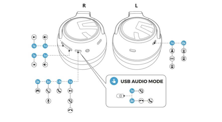 2. Lưu ý: Khi tắt ng, hãy cắm AUX, nhấn và giữ nút ANC trong 3 giây để chuyển đổi giữa Bật/Tắt chức năng Chống ồn.