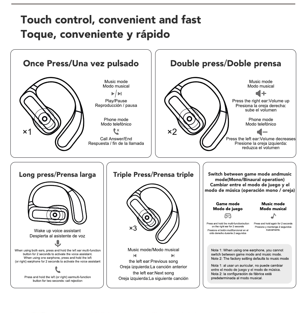 Chế độ trò chơi: Nhấn và giữ tai nghe phù hợp trong 2 giây để nghe hai âm thanh nhắc nhở.