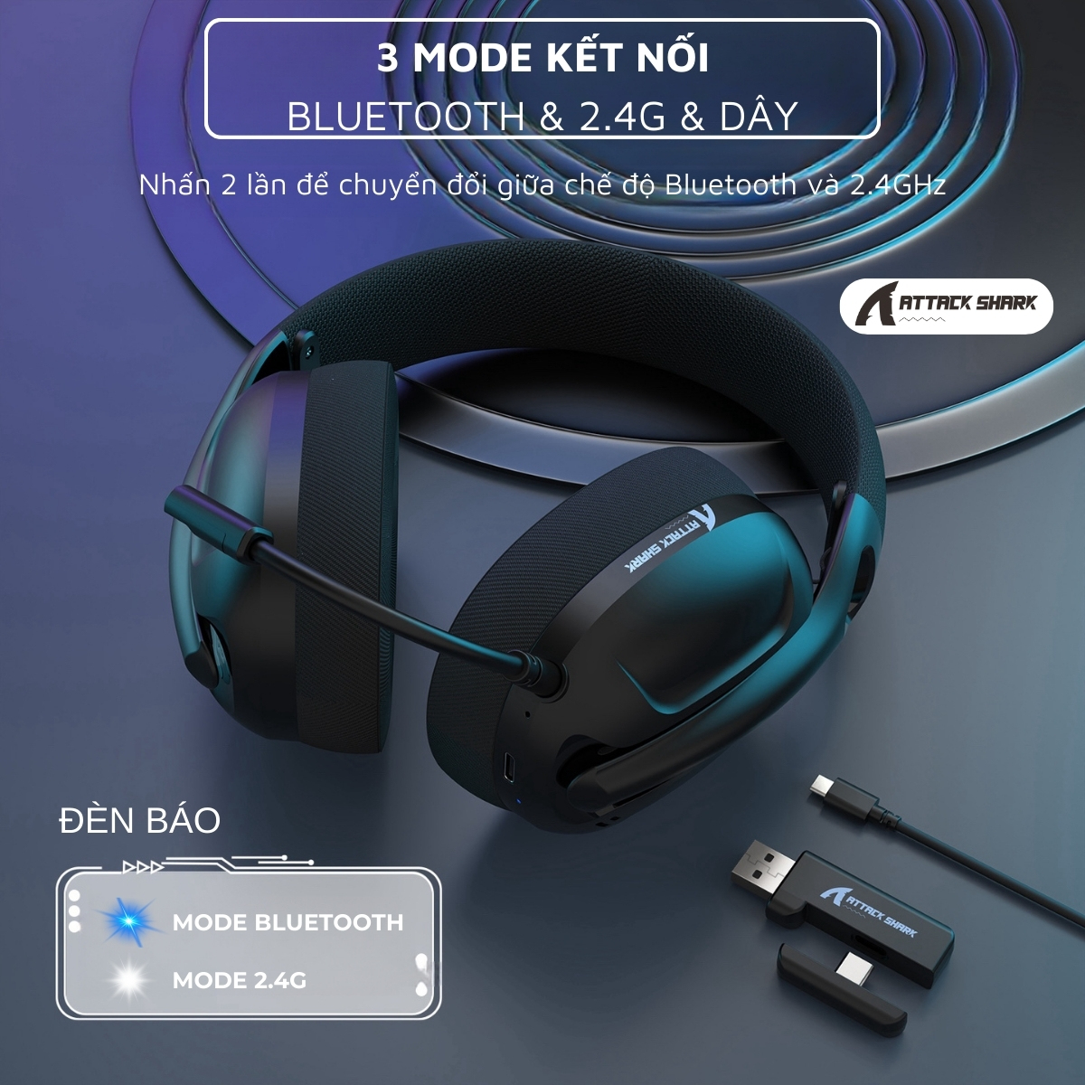 Tai nghe Không Dây Attack Shark L80 Supper Bass 3 Chế Độ Kết Nối Mic Tháo Rời Thời Lượng Pin Trâu