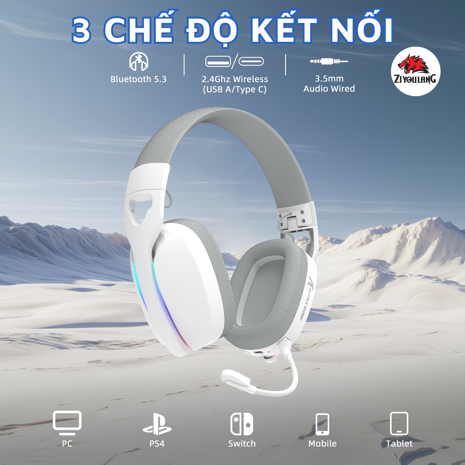 Tai Nghe Không Dây Attack Shark L90 - 3 Mode Kết Nối, Âm Thanh Vòm 7.1, LED RGB, Micro Chống Ồn