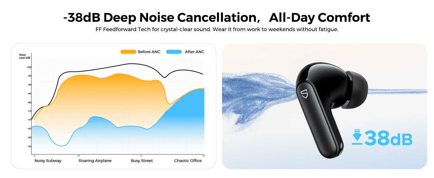 Giảm tiếng ồn chủ động: FF ANC (độ sâu giảm tiếng ồn lên đến -38dB)