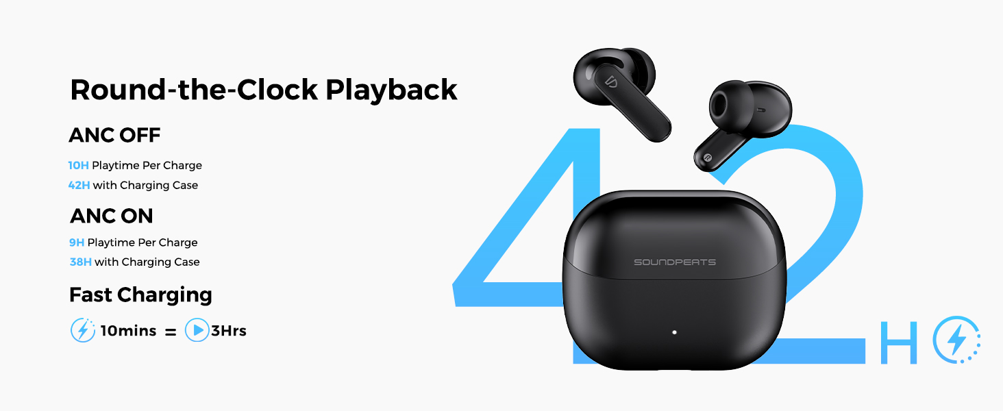 Thời lượng pin: 10H cho mỗi tai nghe, tổng thời lượng pin khoảng 42H (10 phút = 3 giờ)