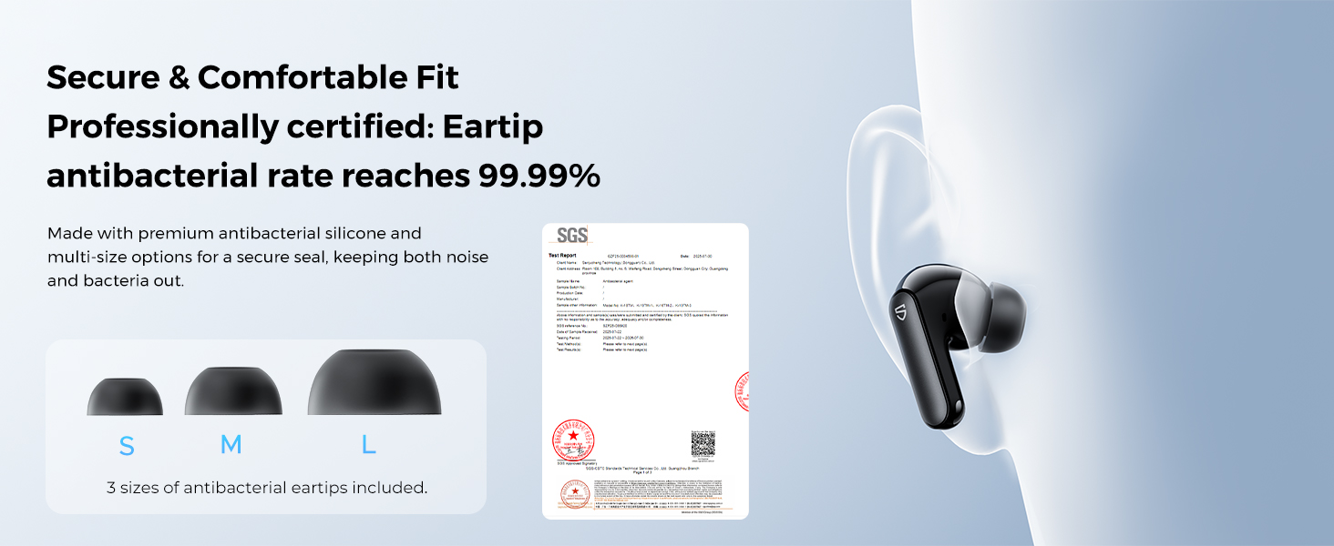 3. Được làm bằng mũ tai bằng silicon kháng khuẩn chất lượng cao, tỷ lệ kháng khuẩn cao tới 99,9%, có tác dụng ức chế sự phát triển của vi khuẩn, giảm nguy cơ nhiễm trùng tai, mang đến cho người dùng sự vệ sinh và an toàn hơn Trải nghiệm mặc.