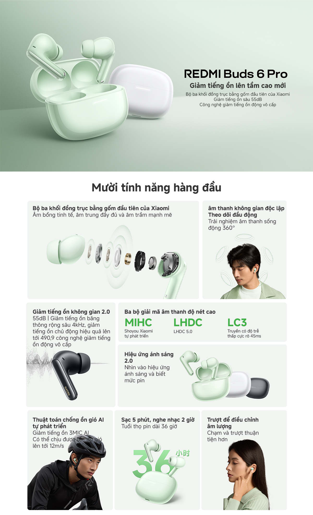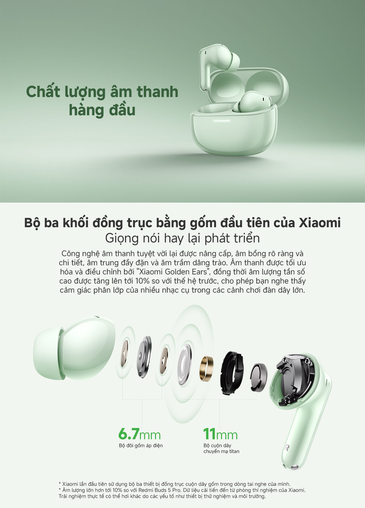 Tai Nghe Không Dây Xiaomi Redmi Buds 6 Pro - 3 Micro AI - Hàng chính hãng - Bảo hành 6 tháng