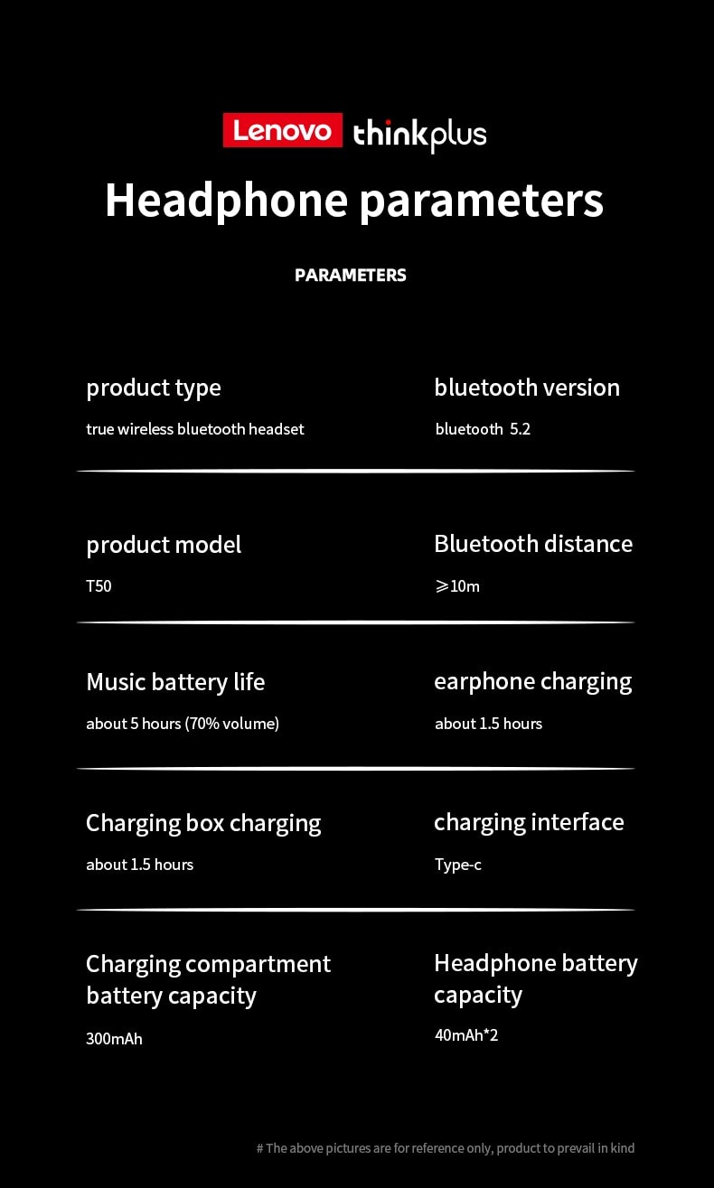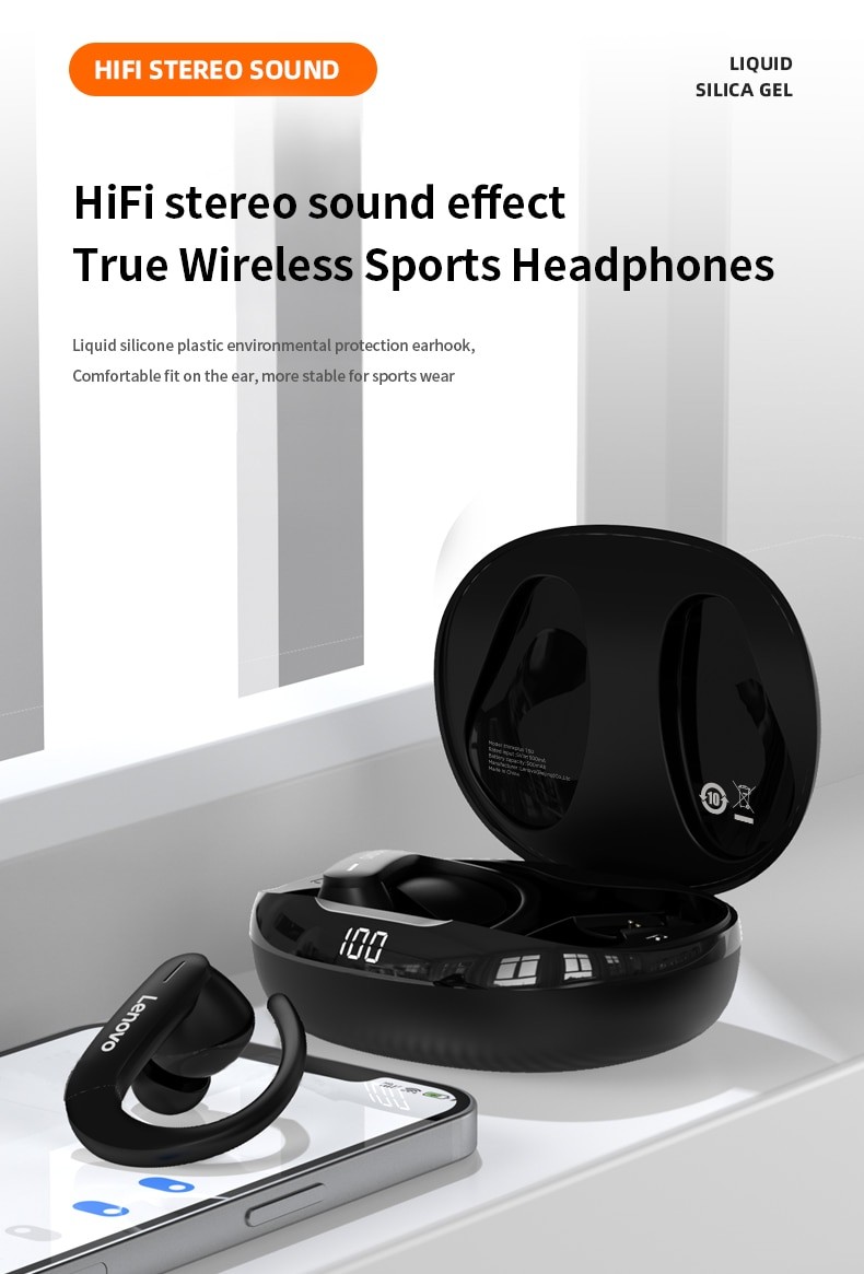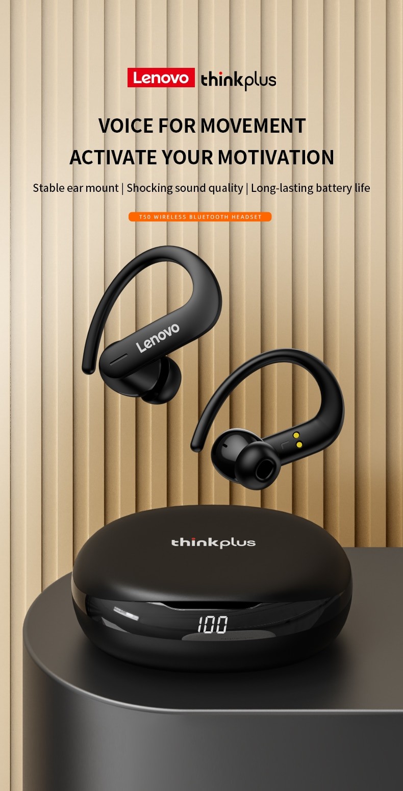 Hiệu ứng âm thanh nổi Lenovo T50 HiFi Tai nghe thể thao không dây đích thực