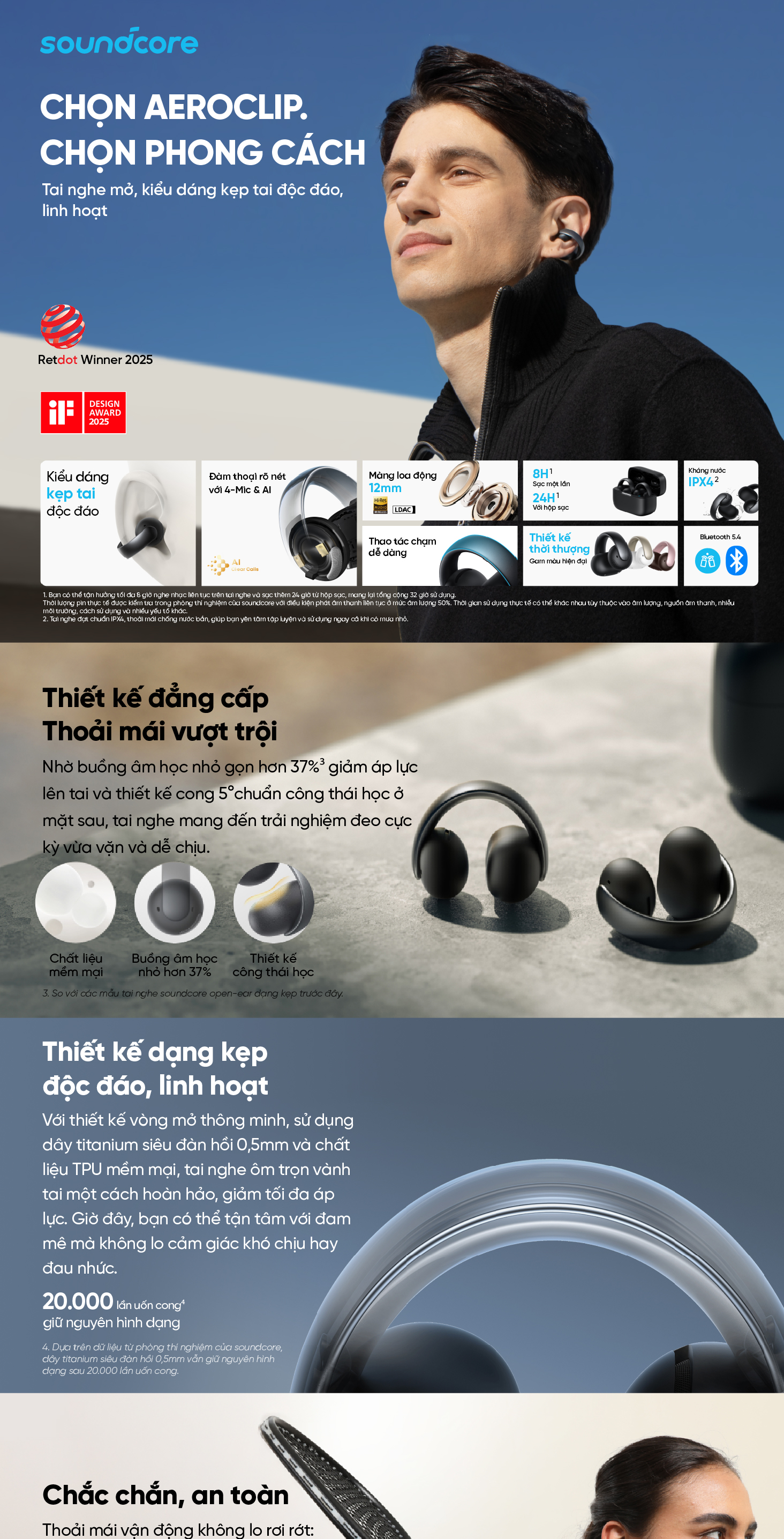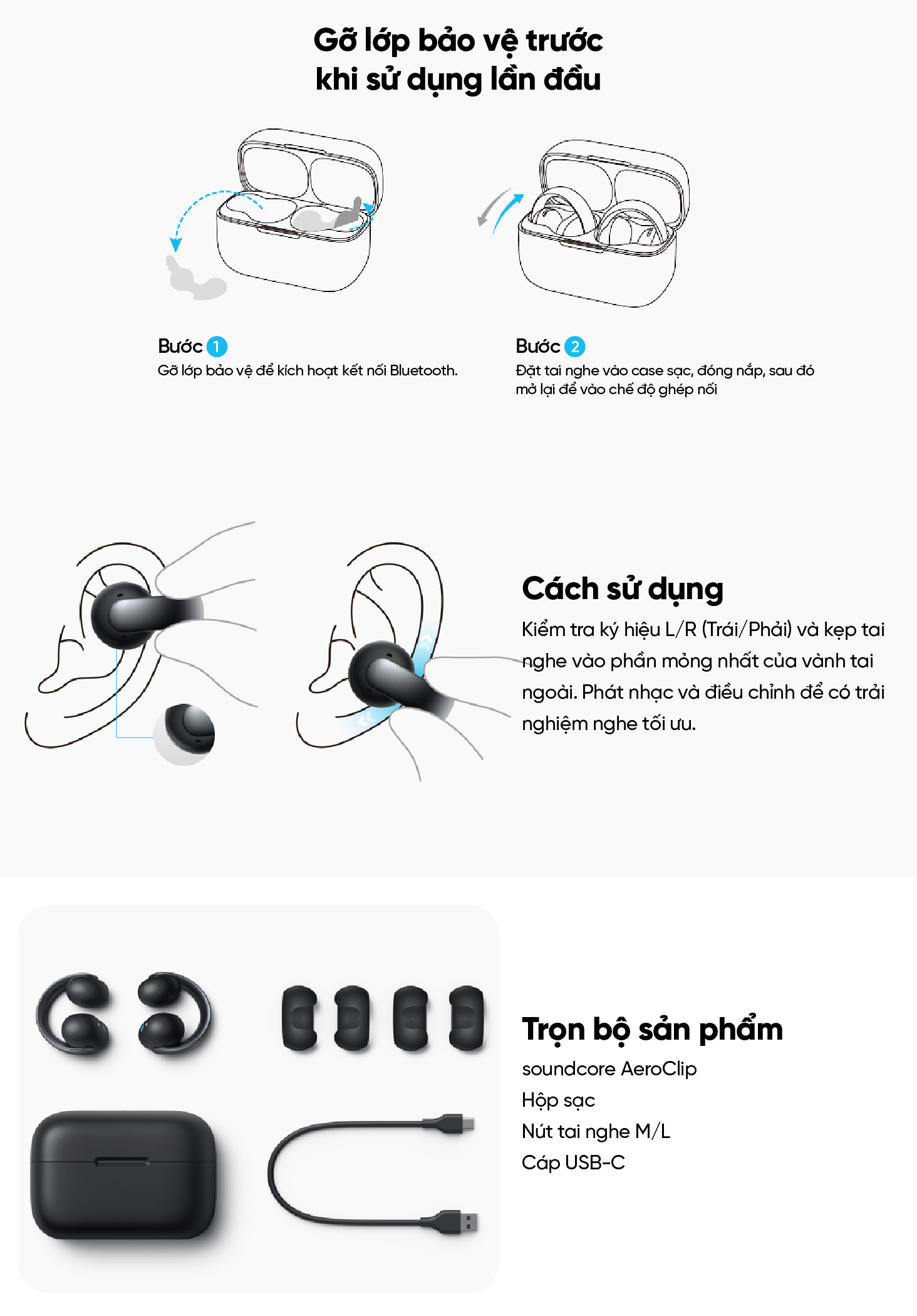 Tên sản phẩm: Tai nghe mở, kiểu dáng kẹp tai độc đáo AeroClip