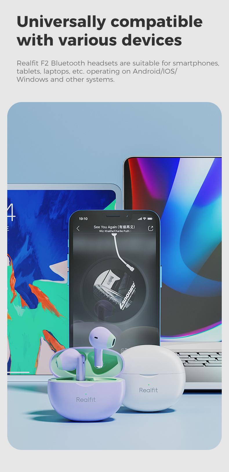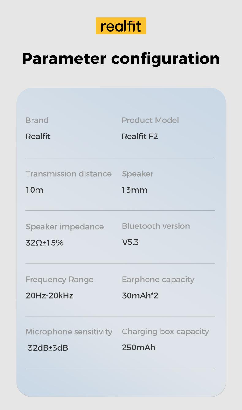 Tai Nghe Nhét Tai Nghe Bluetooth, Realfit F2 TWS, Chất Lượng HIFI, Tai Nghe Không Dây Chân Thực, Có Mic, BT5.3, Âm Trầm Tuyệt Vời