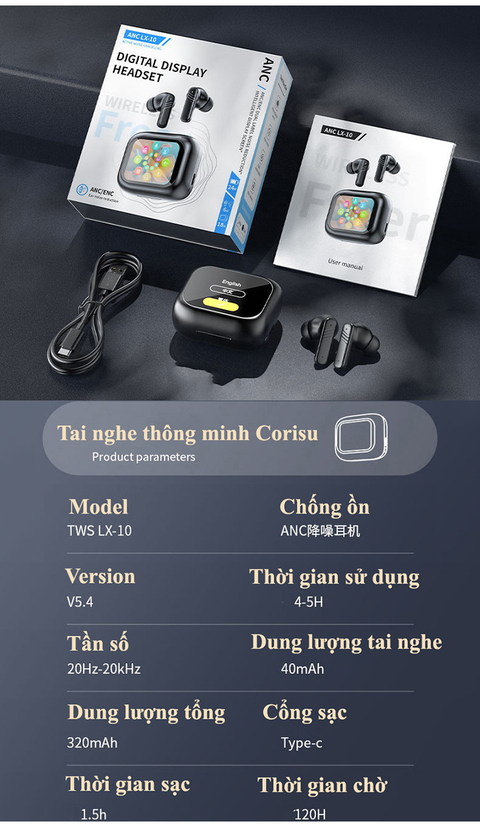 Tai nghe phiên dịch bluetooth thông minh Corisu LX10 tích hợp công nghệ AI, chống ồn, âm thanh siêu đỉnh