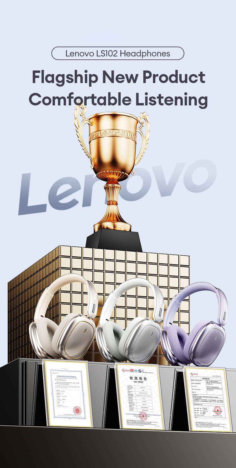 Tai nghe qua tai Lenovo LS102 và tai nghe Bluetooth không dây có âm thanh không gian HiFi và chế độ chơi game 38ms cộng với Mic ENC cho cuộc gọi