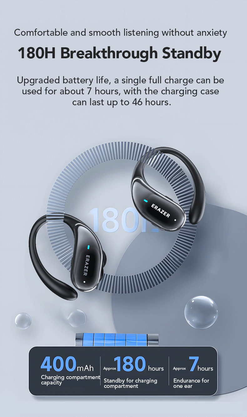 2. Hộp sạc dung lượng lớn 400mAh, thời gian chờ sạc đầy có thể đạt 180 giờ.