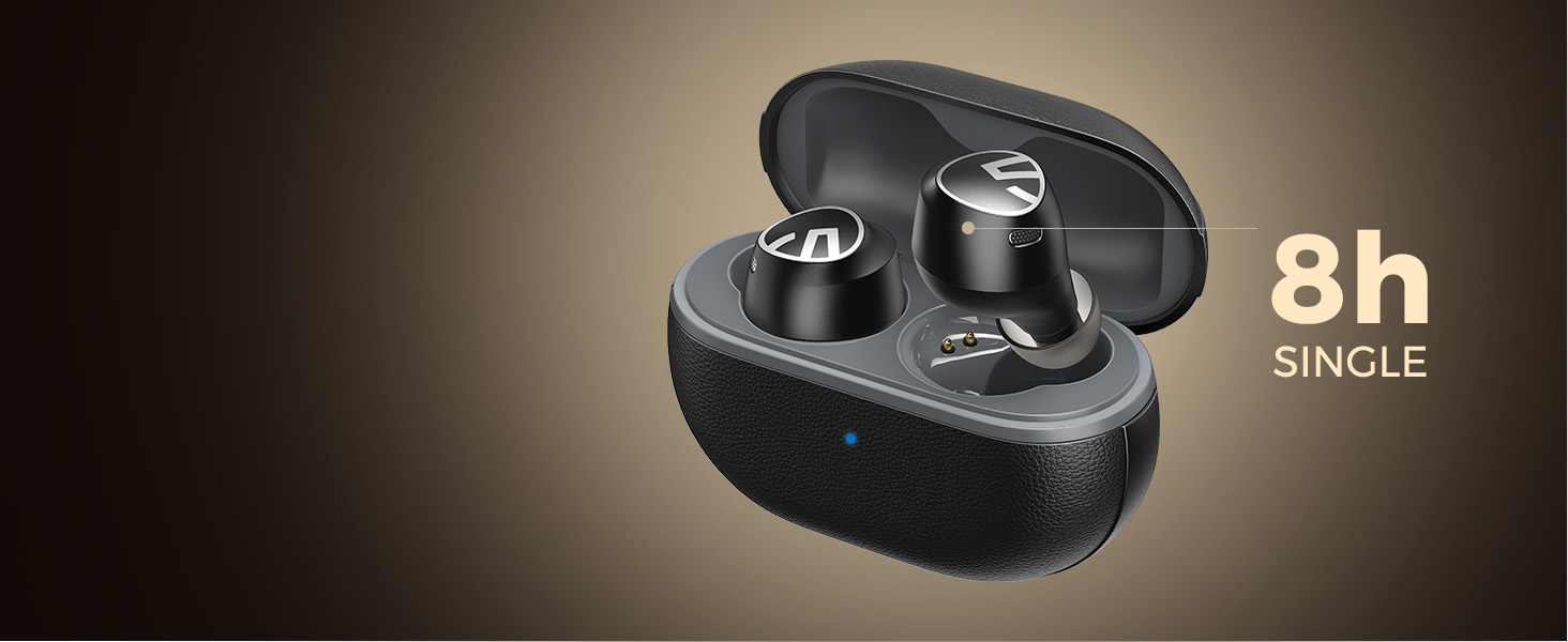 Bạn có thể sử dụng trong 8h liên tục mà chẳng lo hết pin. Còn với case sạc thì bạn có thể sạc đầy tai nghe thêm 2,8 lần nâng tổng thời gian nghe nhạc lên 30 giờ liên tục.