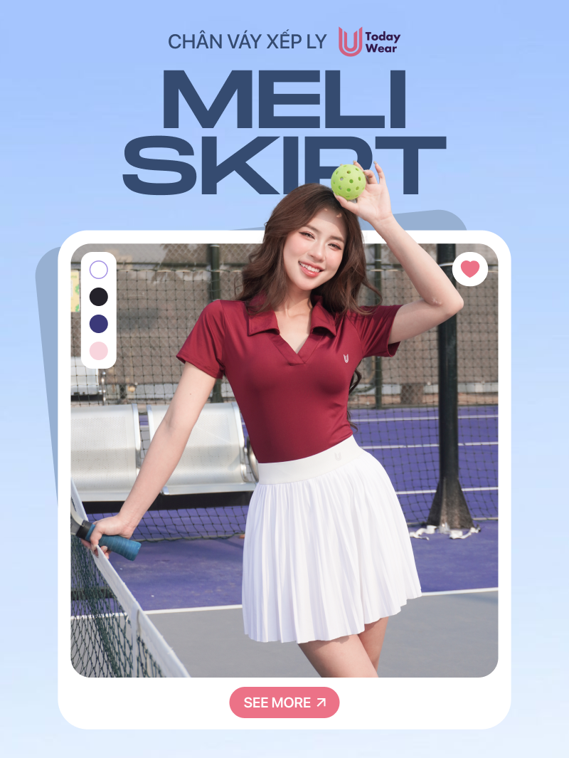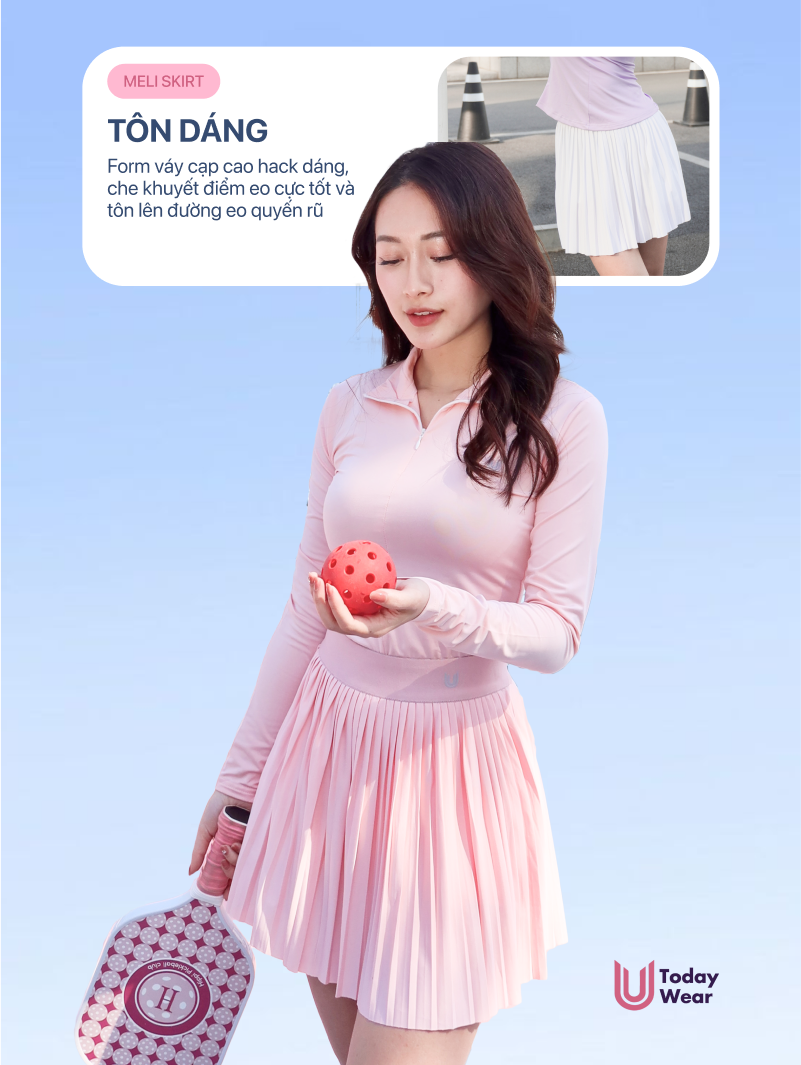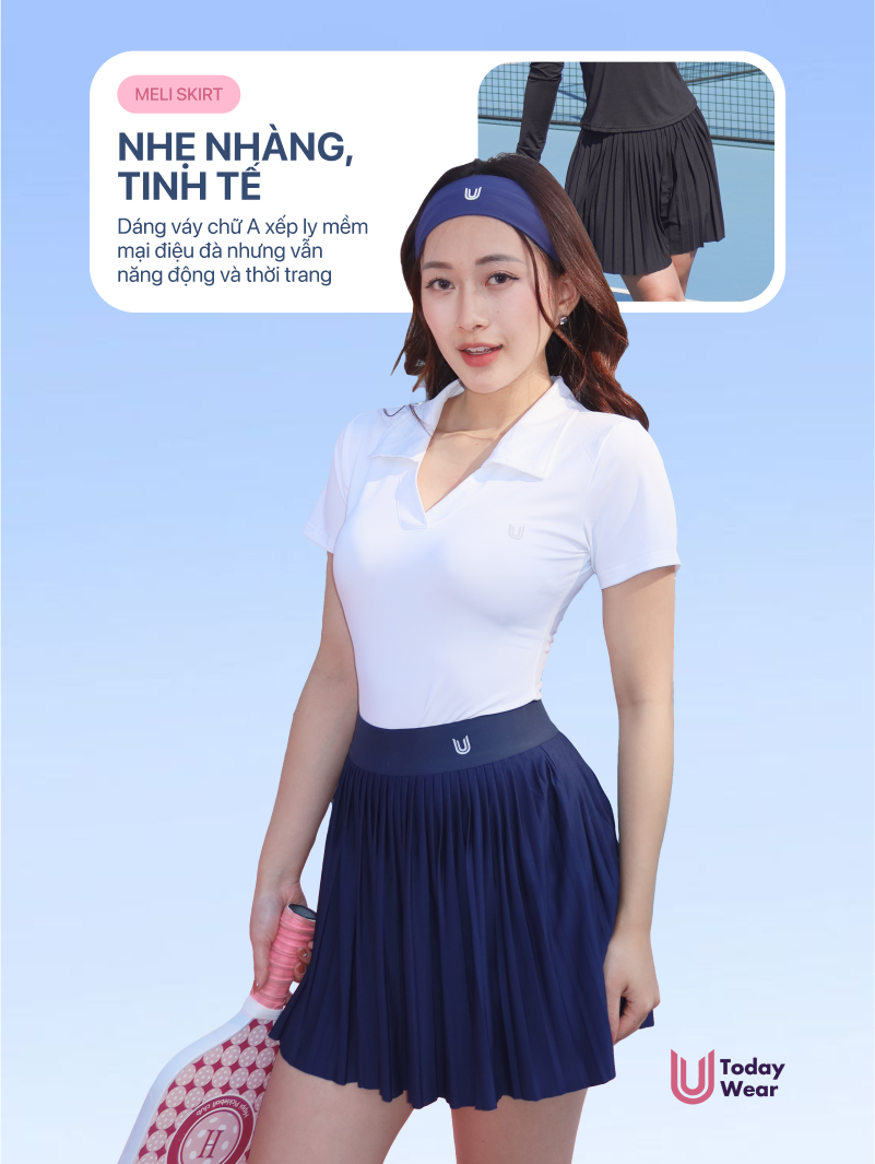 Chân váy ngắn xếp ly thể thao Meli Skirt Today U Wear có sẵn lớp lót bảo hộ thoải mái chơi tennis pickleball
