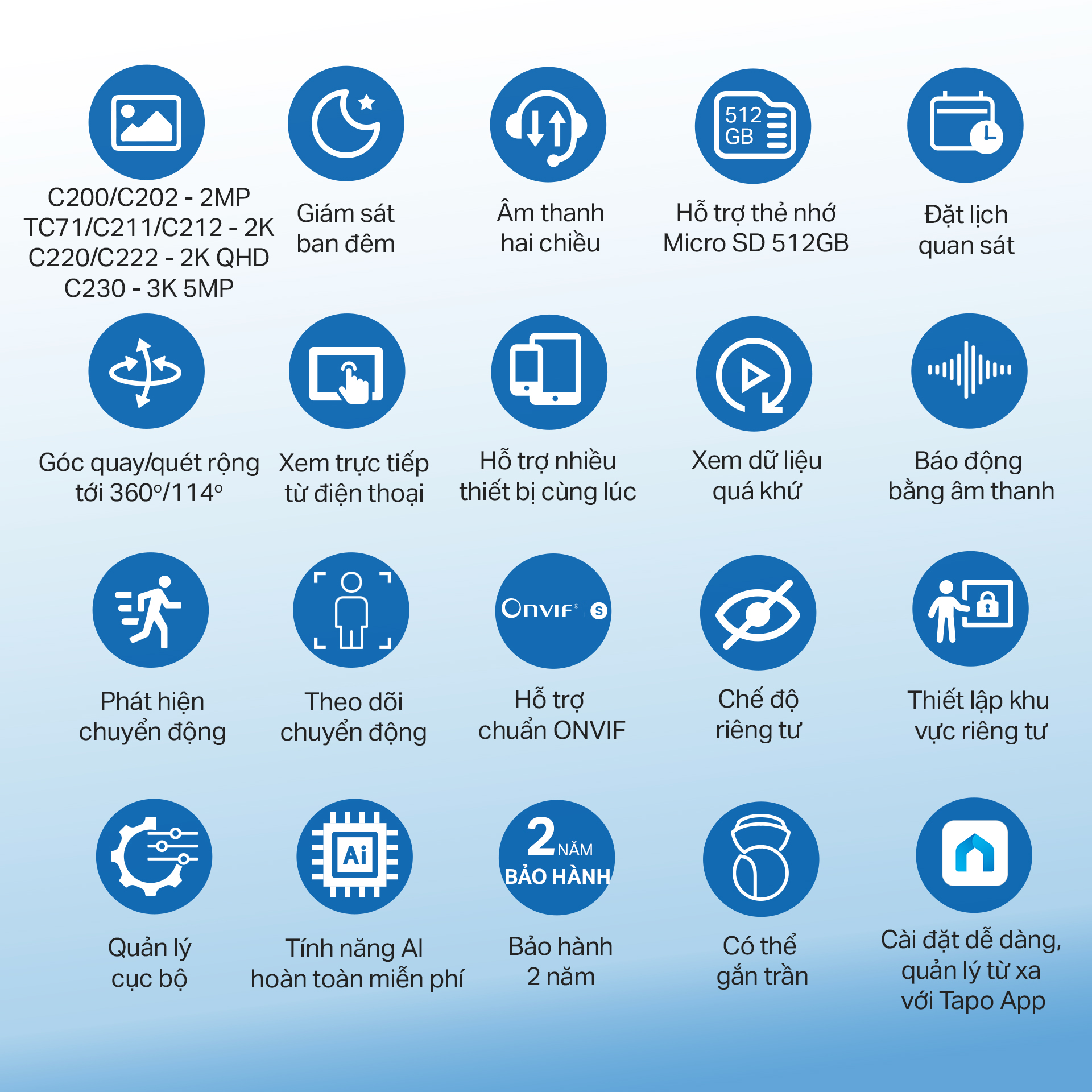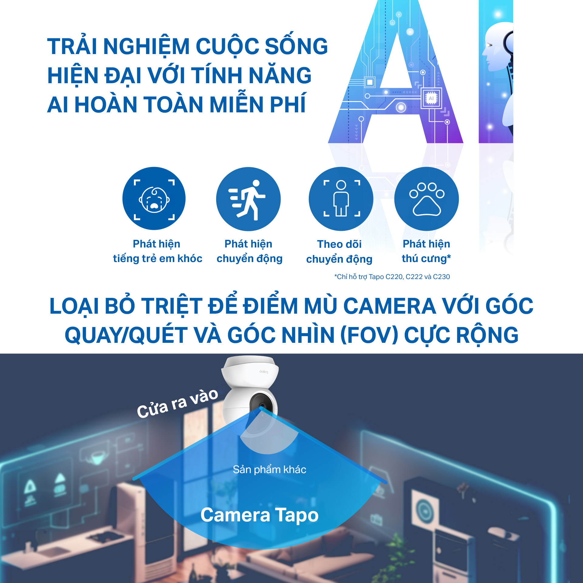 Camera Wifi Trong Nhà TP-Link Tapo C200/TC71/C211/C220/C202/C212/C222/C230 2MP/3MP/5MP/2K QHD Quay 360 độ