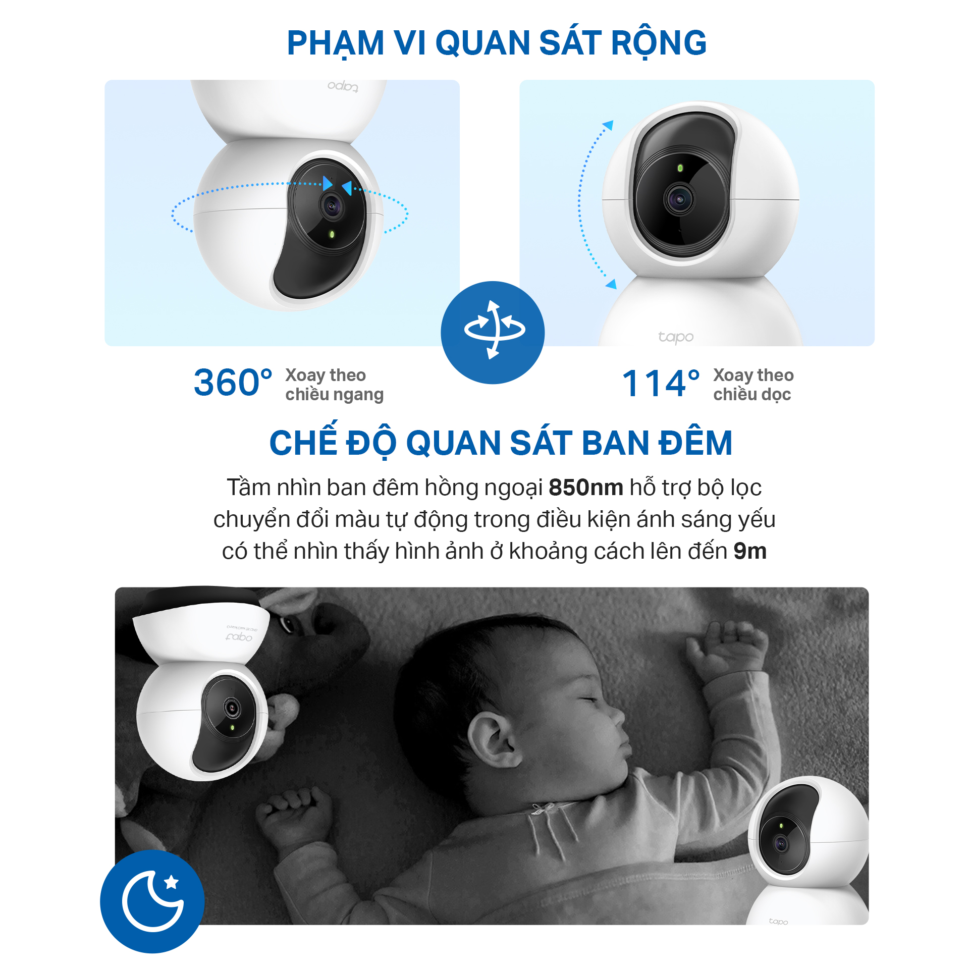 - Phạm Vi Quan Sát Rộng Để Nắm Bắt Mọi Khoảnh Khắc: Xoay 360 độ theo chiều ngang, quét 114 độ theo chiều dọc