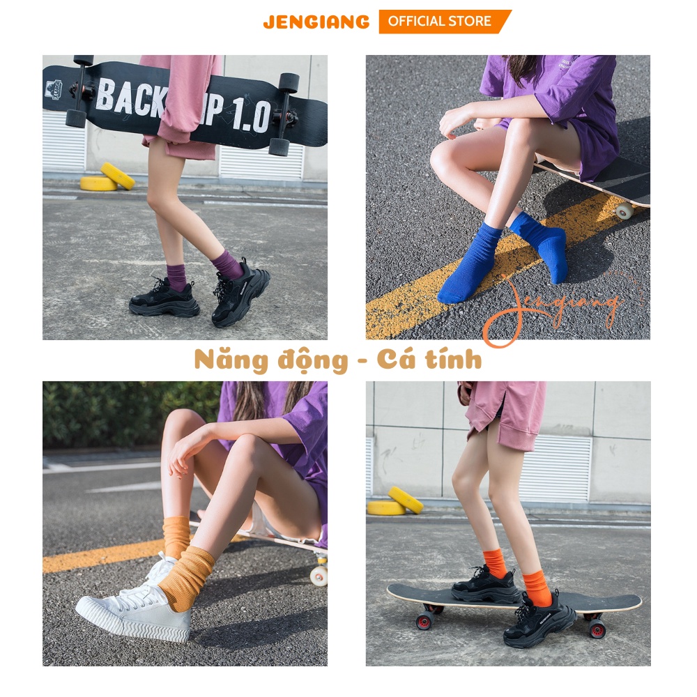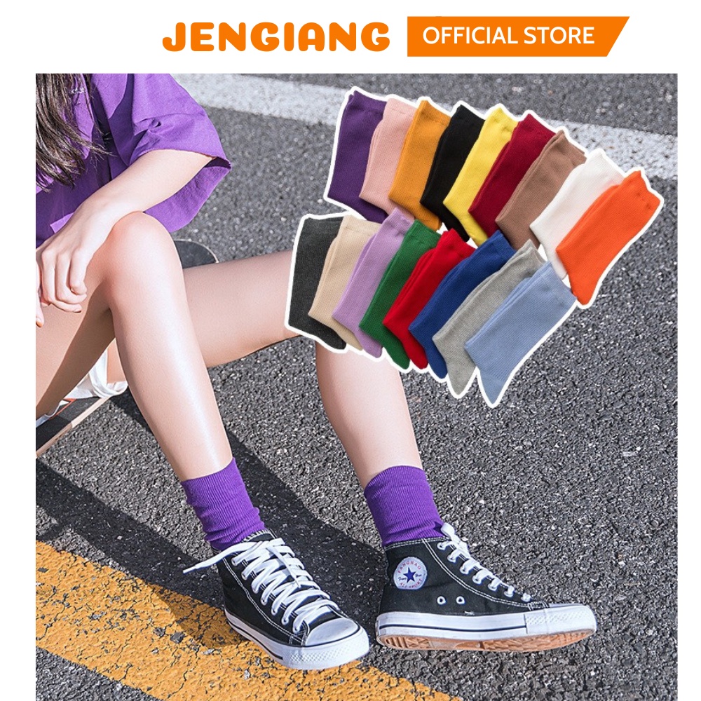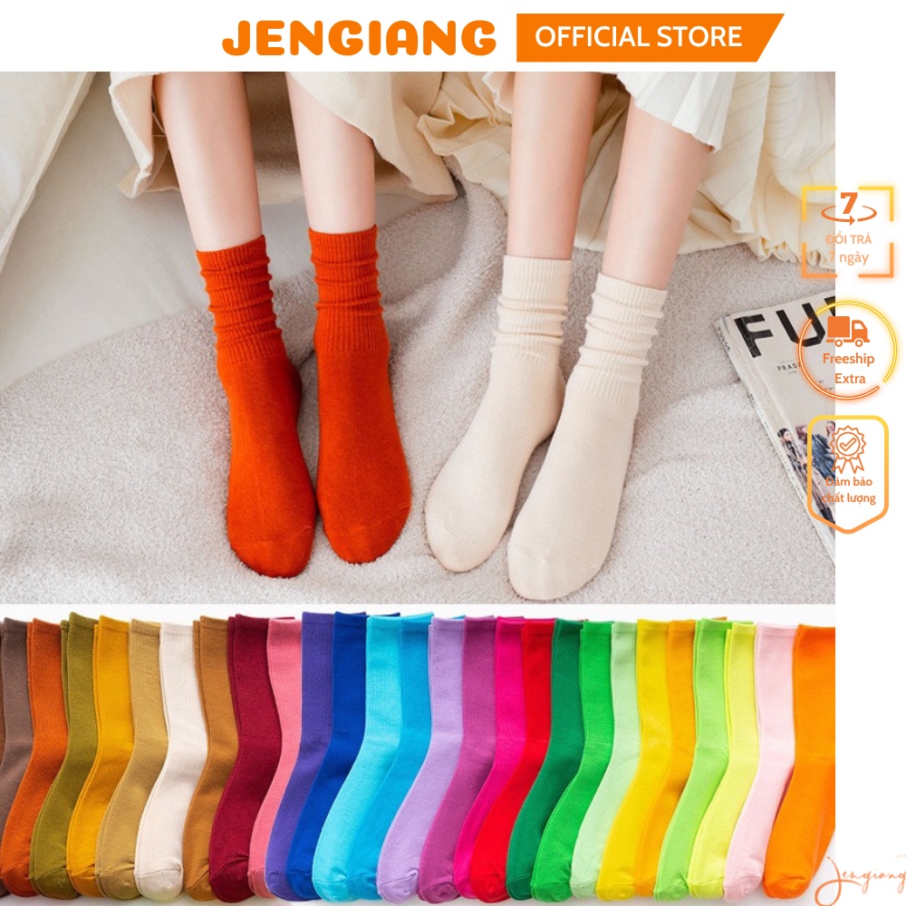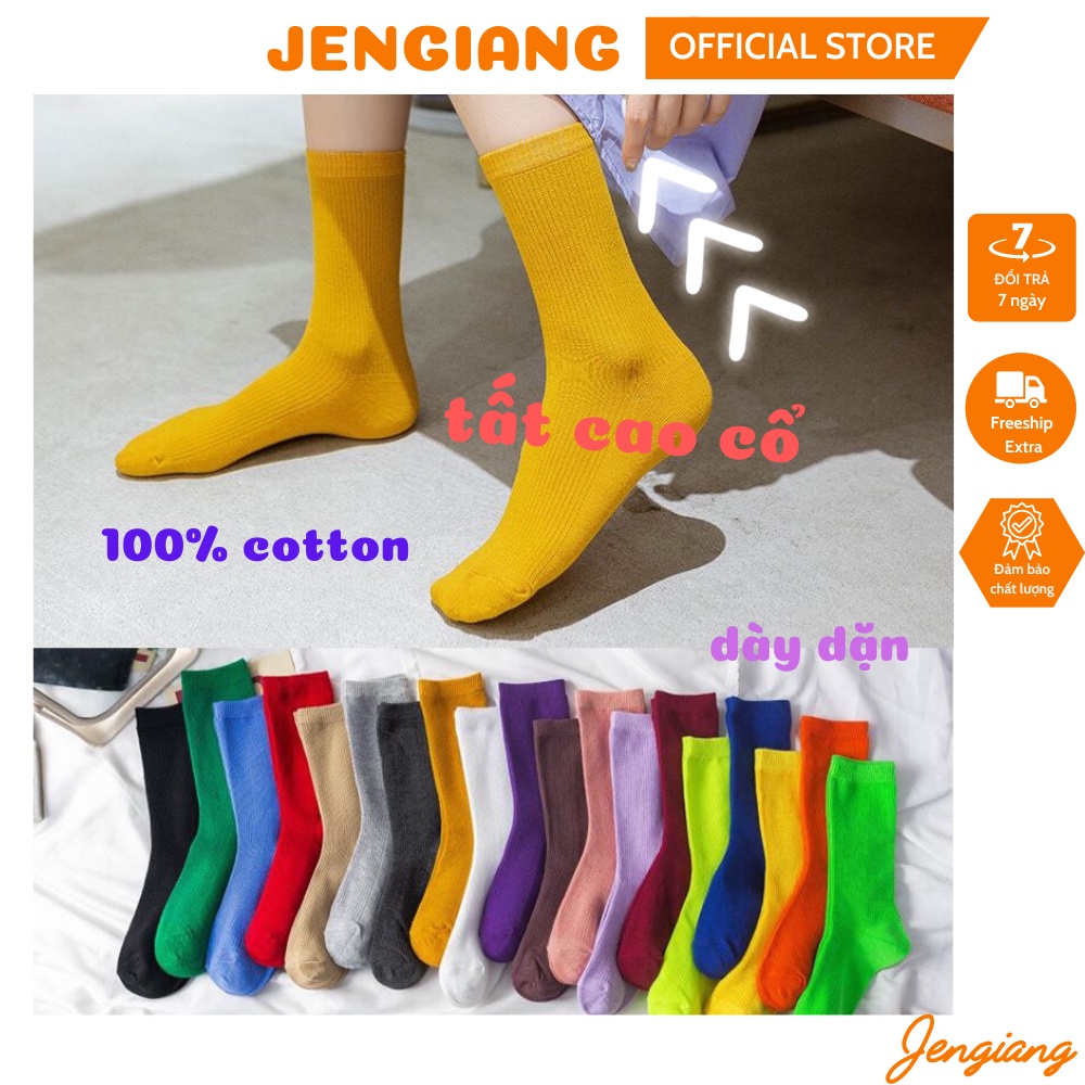 Tất cao cổ nữ Jengiang Vớ nữ cổ cao nhiều màu sắc cotton dày dặn hottrend phong cách ulzzang street wear Hàn Quốc T111