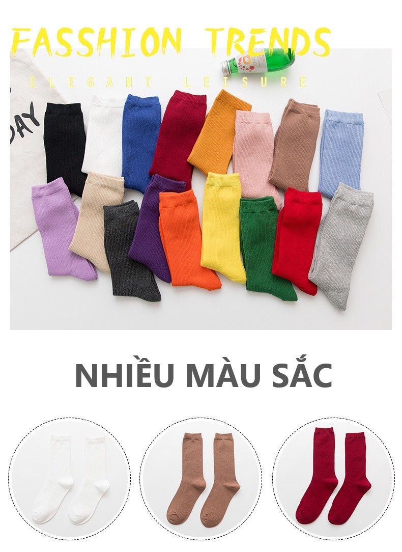 Tất nữ cổ cao và dày dặn hottrend nhiều màu phong cách Hàn Quốc