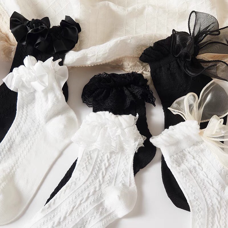 THÔNG TIN CHI TIẾT SẢN PHẨM Vớ phối ren đính nơ phong cách lolita Nhật Bản