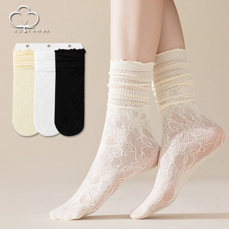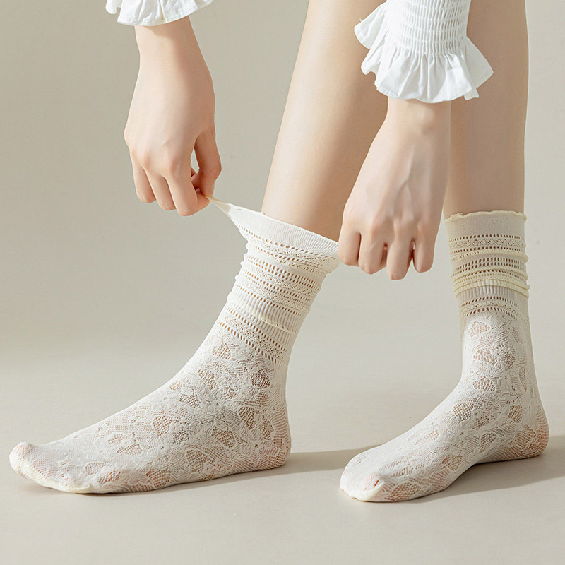 Tất vớ lưới mùa hè Jengiang chất liệu ren thoáng khí, thoải mái, thấm hút mồ hôi phong cách công chúa dành cho nữ T415