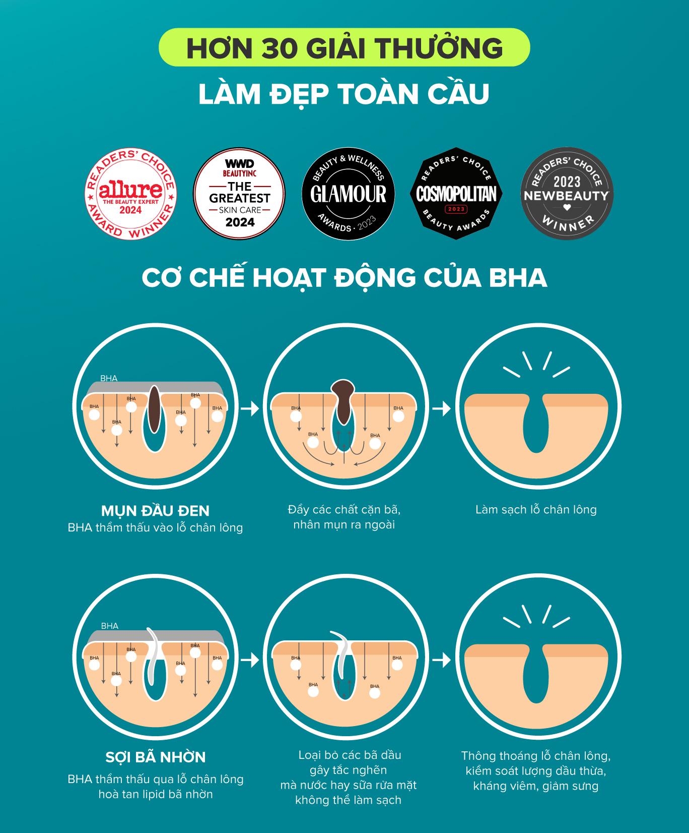 Tẩy tế bào chết hỗ trợ làm sạch sâu Paula's Choice Skin Perfecting 2% BHA Liquid Exfoliant 30ml B2016