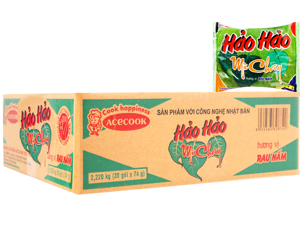 Thùng 30 gói hảo hảo mì chay hương vị rau nấm 74g Acecook