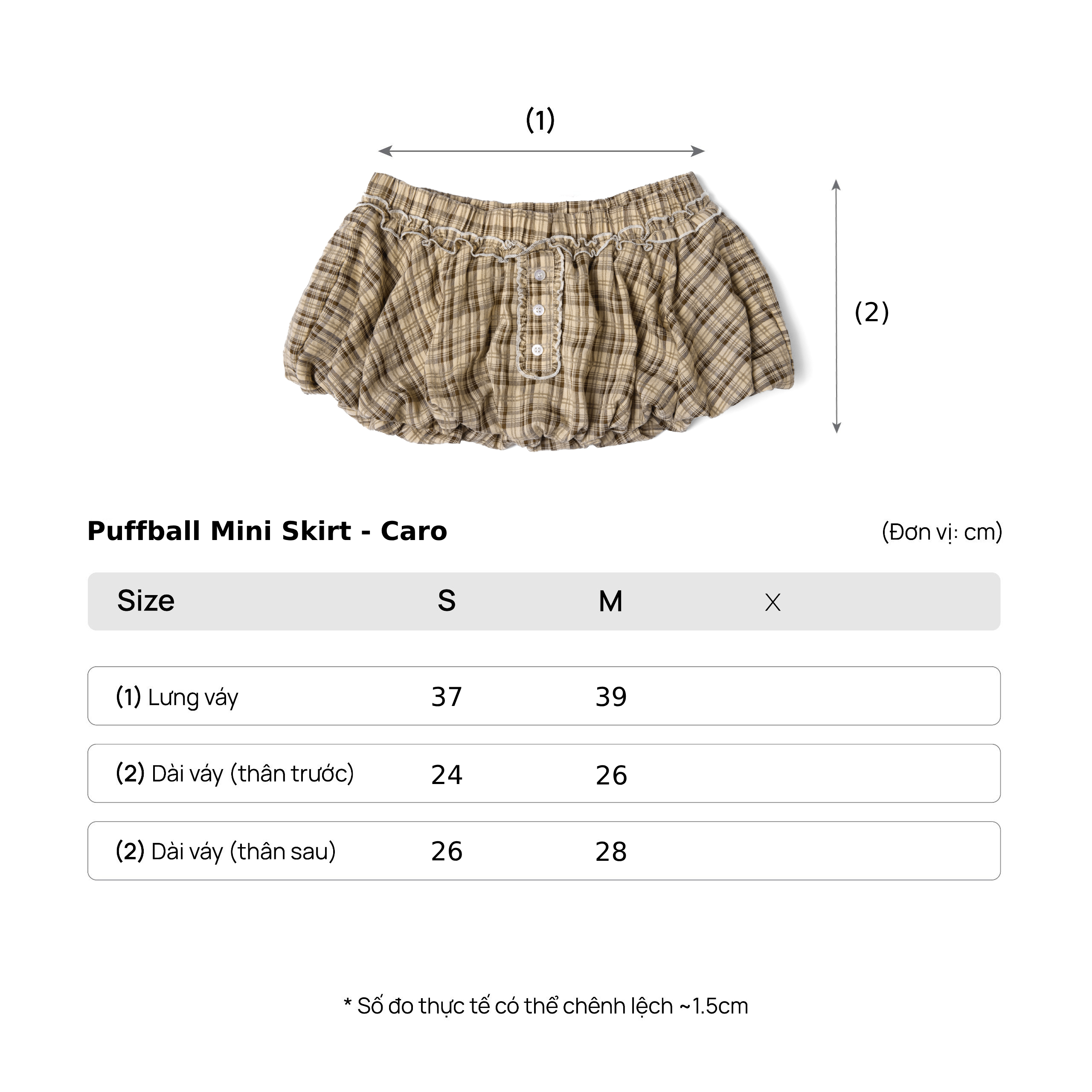 + Size: S, M (Vui lòng tham khảo bảng size chi tiết).