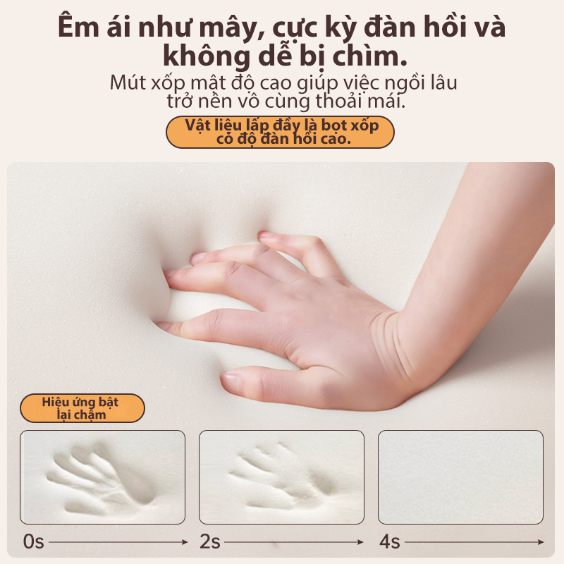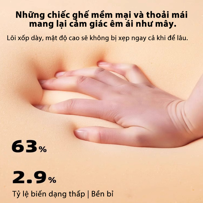 ✨ Đệm ngồi êm ái: Lớp đệm dày dặn, bọc da PU cao cấp chống thấm nước hoặc vải dệt thoáng khí, không gây hầm bí khi ngồi lâu.