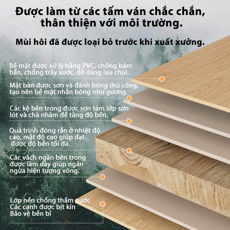 ✨ Chất liệu chống ẩm: Gỗ MDF được xử lý công nghệ hiện đại, chống mối mọt và phù hợp với khí hậu nóng ẩm của Việt Nam.