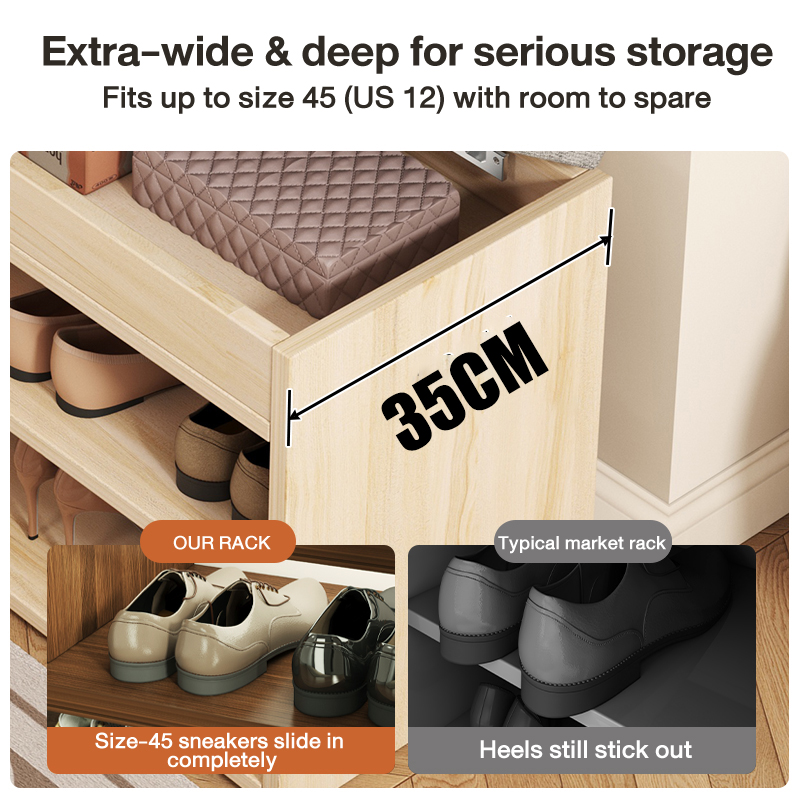 ✨ Tối ưu không gian: Thiết kế siêu mỏng nhưng sức chứa lớn, giúp hành lang nhà bạn luôn gọn gàng, ngăn nắp.