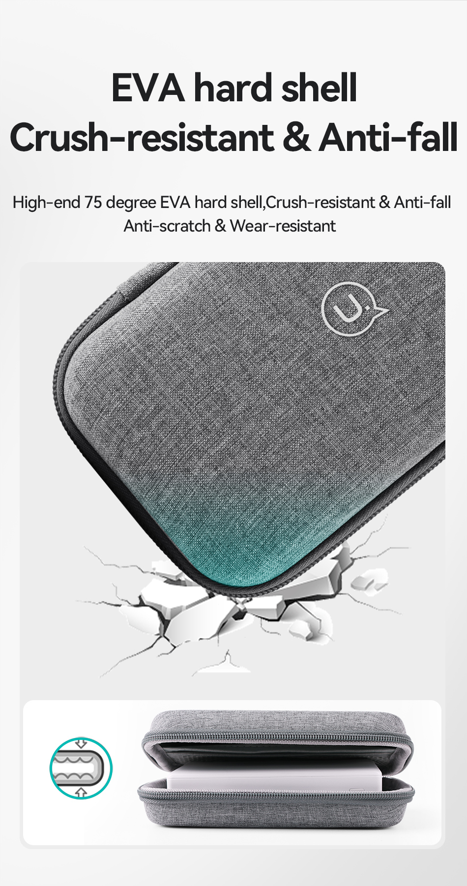 1. Vỏ cứng EVA, chống xước và chống mài mòn.