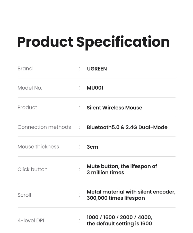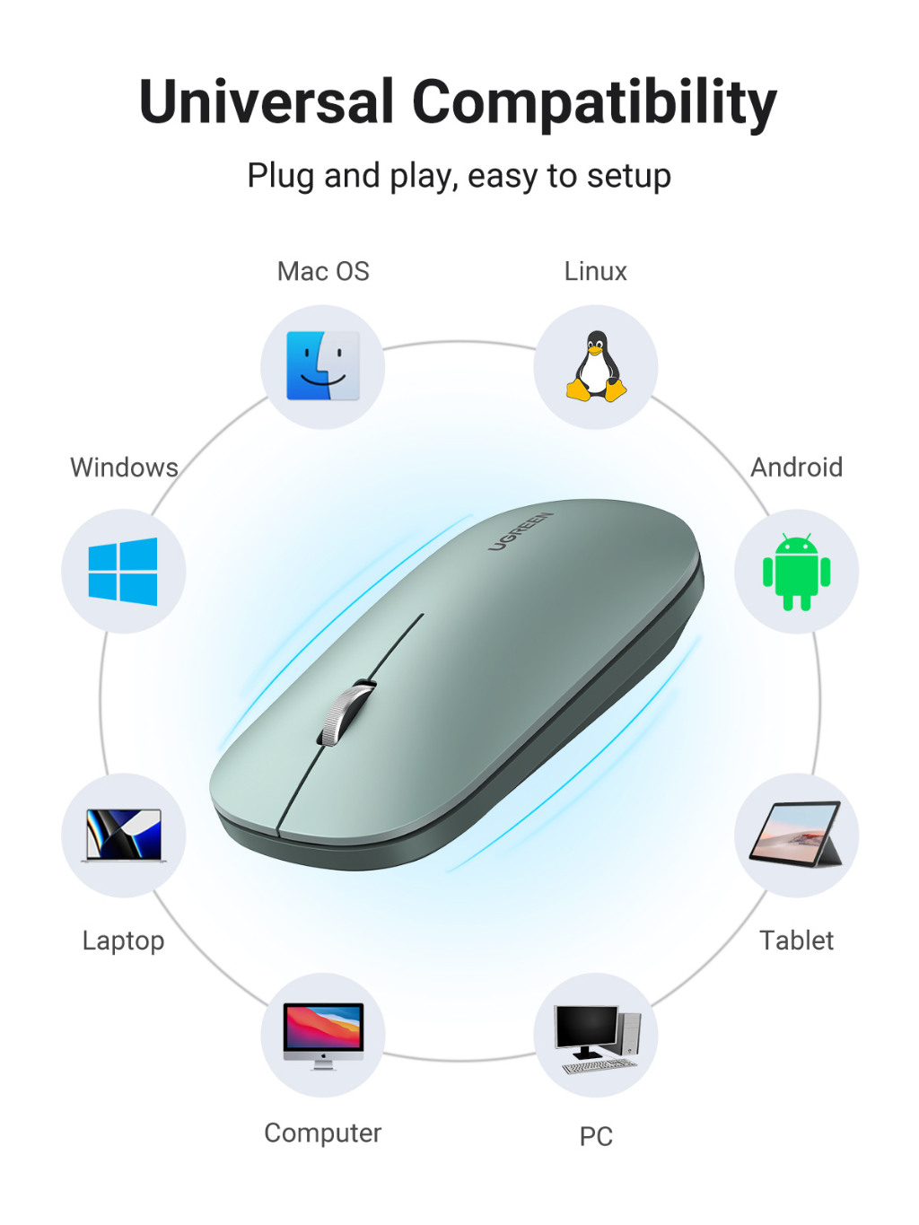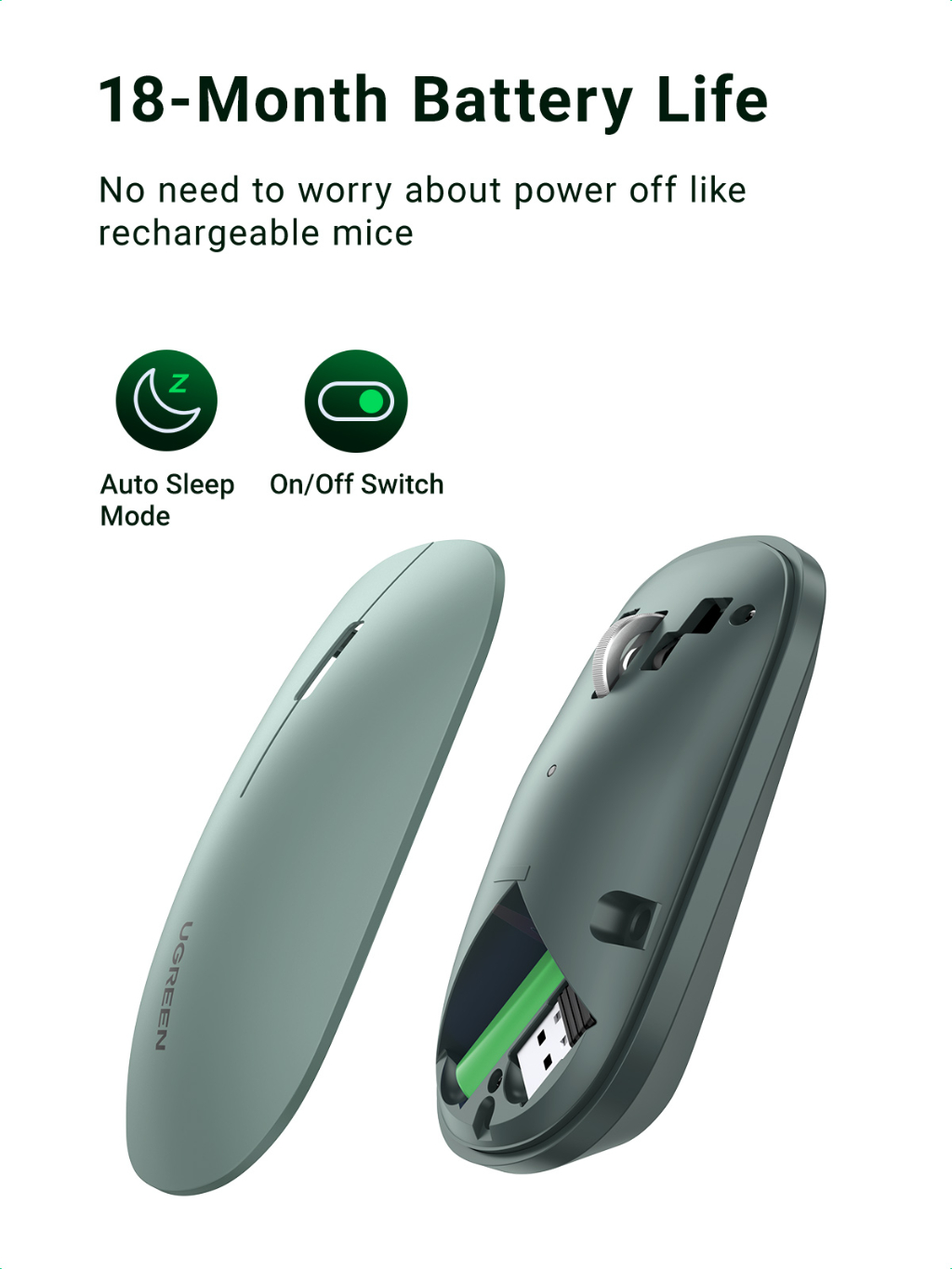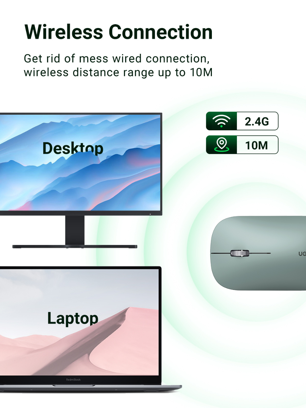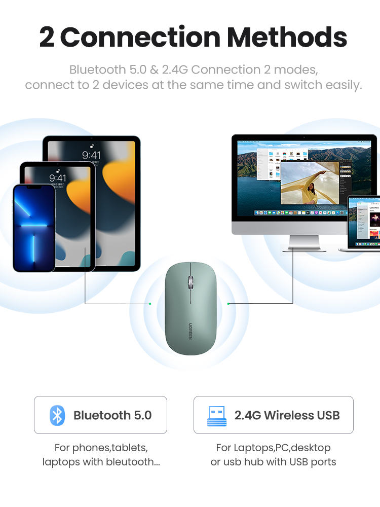 Ugreen Chuột Không Dây Bluetooth 2.4G Và 5G 4000 DPI cho PC MacBook Air M1 iPad Gen 9 máy tính xách tay