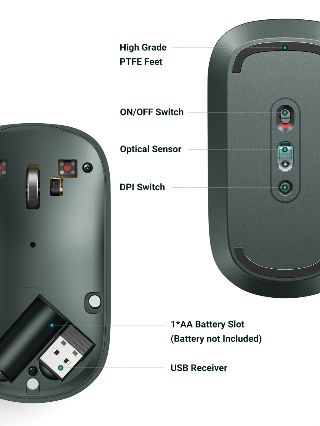 Lưu ý: Trong chuột không bao gồm pin, bạn phải tự mua pin.