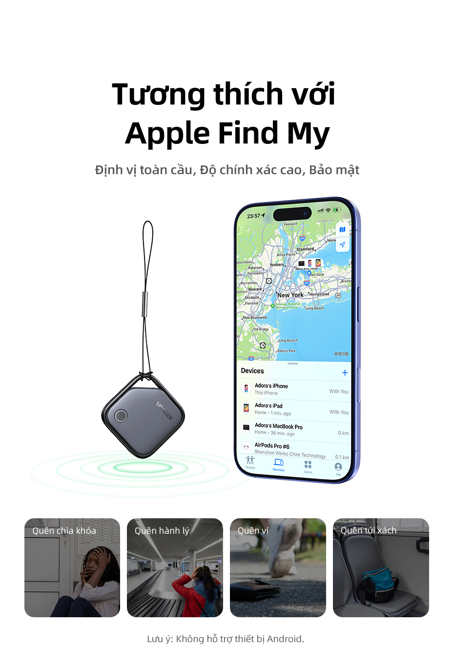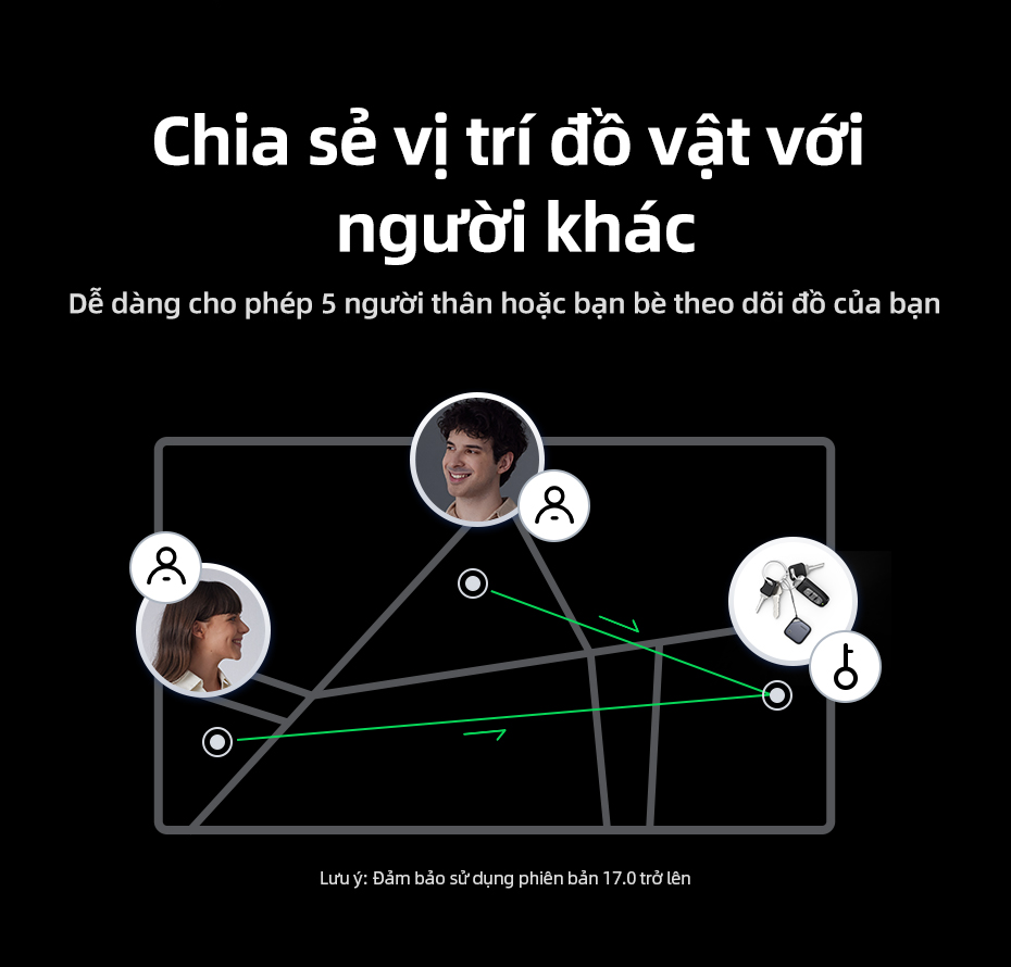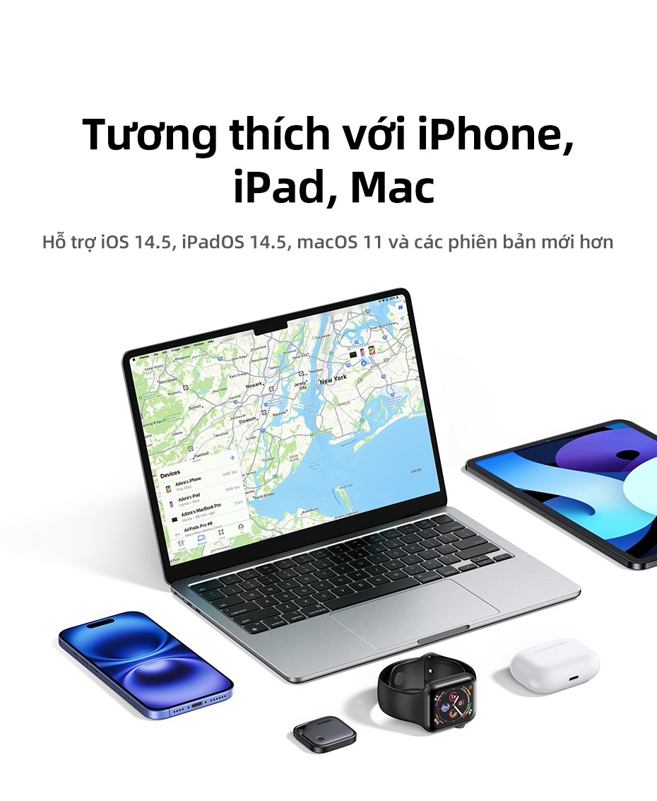 1.Apple Find My Certified (chỉ dành cho iOS): Không cần cài đặt, sử dụng ứng dụng Find My đi kèm với iPhone của bạn để kết nối. Chức năng mã hóa nâng cao trong ứng dụng khiến không ai có thể truy cập vị trí thiết bị ngoại trừ bạn, bảo vệ quyền riêng tư của bạn tốt hơn. (Chỉ hỗ trợ hệ điều hành iOS, iPad OS, MacOS)
