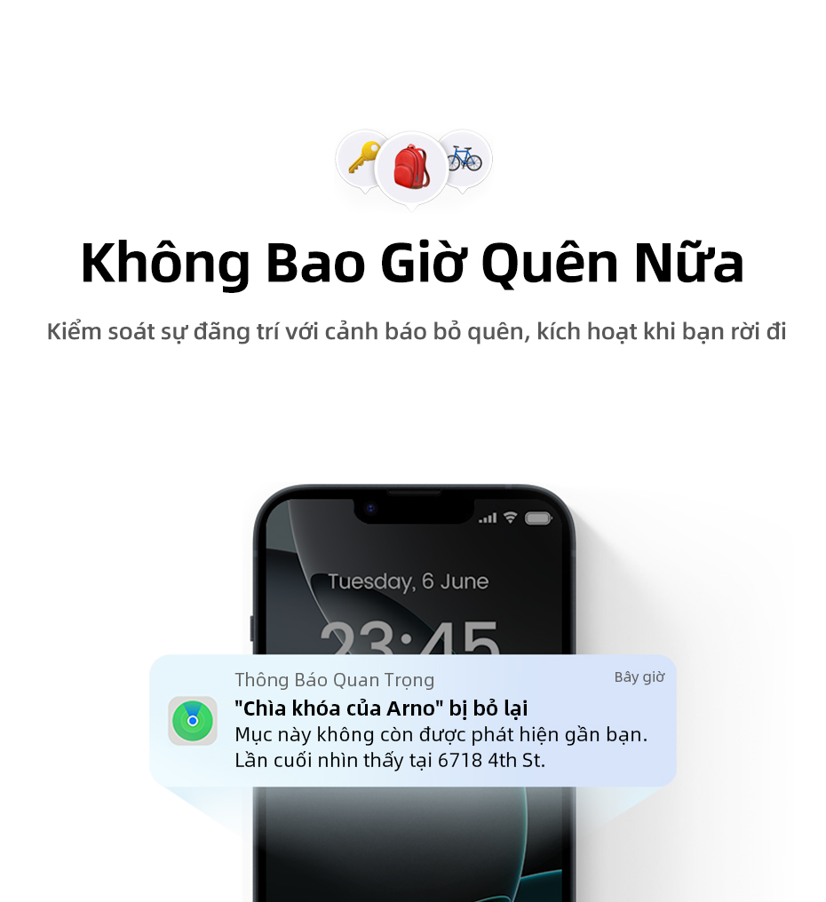 4.Theo dõi đa chế độ & nhắc nhở thất lạc: Bạn có thể theo dõi đồ vật bị thất lạc trên toàn thế giới thông qua ứng dụng Find My khi nó ở xa (các thiết bị Apple iPhone/iPad/mac phải ở gần), sau đó phát ra âm thanh lớn để tìm thấy nó nhanh chóng khi đồ vật bị thất lạc ở gần; Ngoài ra, thiết bị đi kèm với chức năng nhắc nhở thất lạc và điện thoại sẽ nhắc nhở bạn khi bạn để đồ vật ở một khoảng cách nhất định.