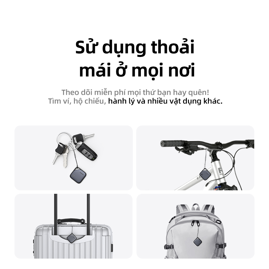 5.Thiết kế siêu nhỏ và chu đáo: Sản phẩm nhỏ và mỏng với kích thước 36*36*7,4mm. Thiết kế lỗ cho phép thiết bị dễ dàng gắn vào các vật dụng quan trọng như chìa khóa, ba lô và vali, và đi kèm với nhãn dán để ghi lại mục đích một cách tự do.