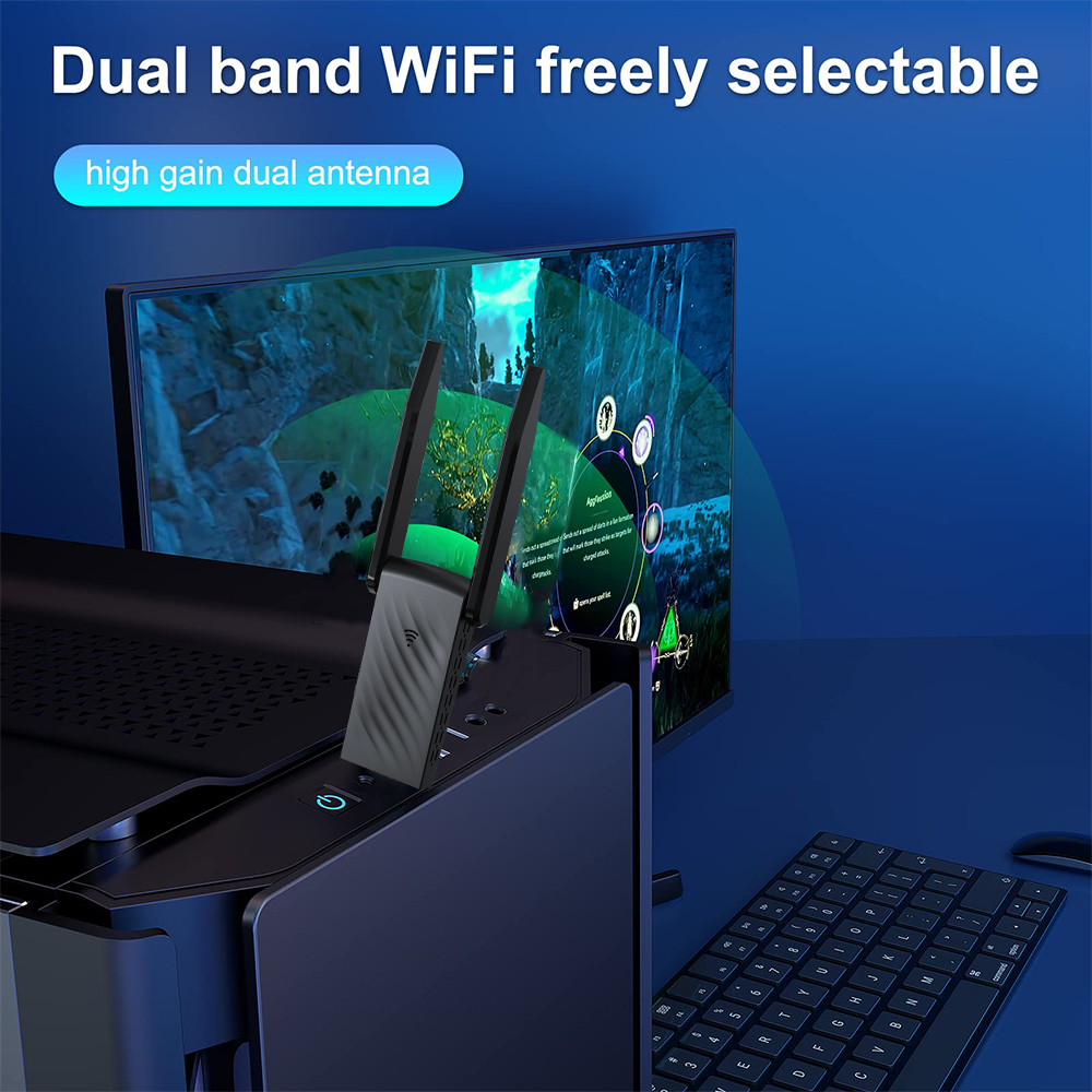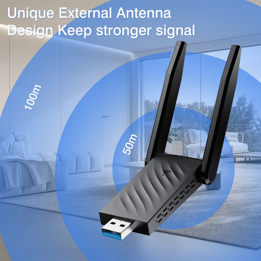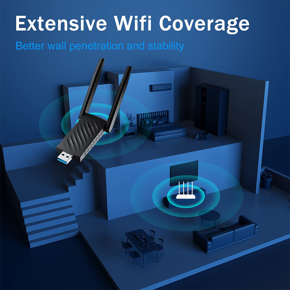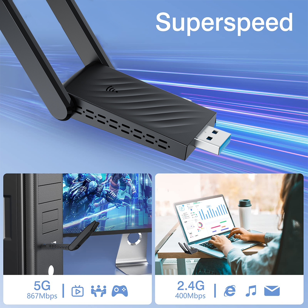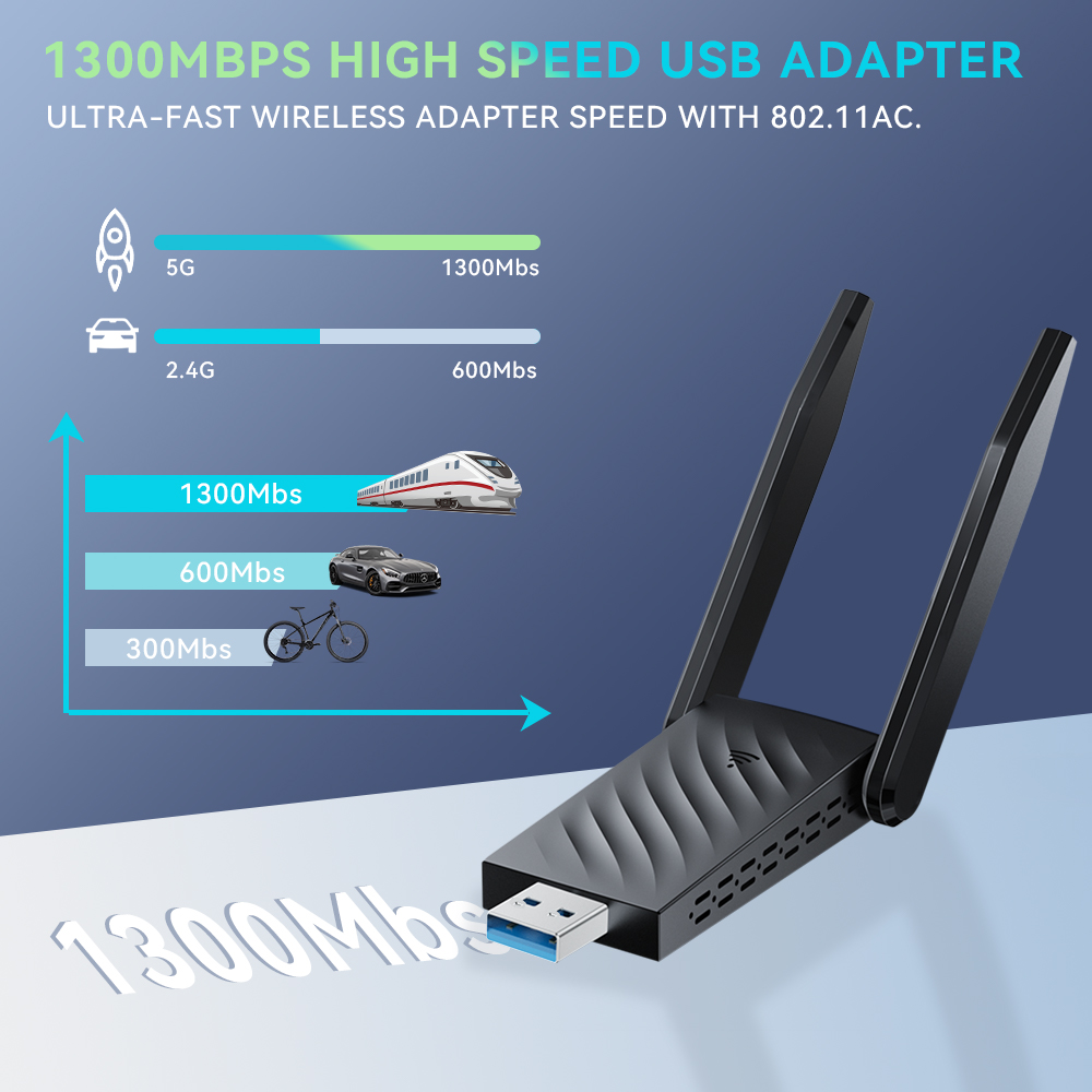 Bộ điều hợp wifi USB tốc độ 1300Mbps nhanh - bộ điều hợp wifi goojodoq cung cấp kết nối wifi ổn định và tầm xa mà không bị lag, nâng cấp PC hoặc máy tính xách tay của bạn lên chuẩn 802.11ac với tốc độ gấp đôi bộ điều hợp Wireless N tích hợp